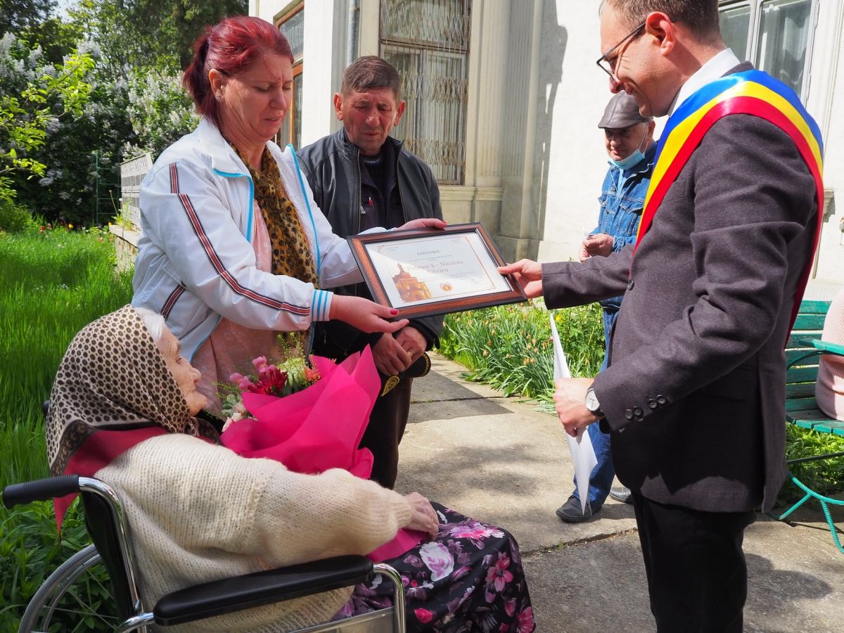 Ieri a fost ziua doamnei Silviea Petrușcă – Nicolau, care a împlinit onorabila vârstă de 100 de ani și, cu această frumoasă ocazie, primarul Cosmin Andrei a ținut să o felicite și să-i ofere o diplomă.