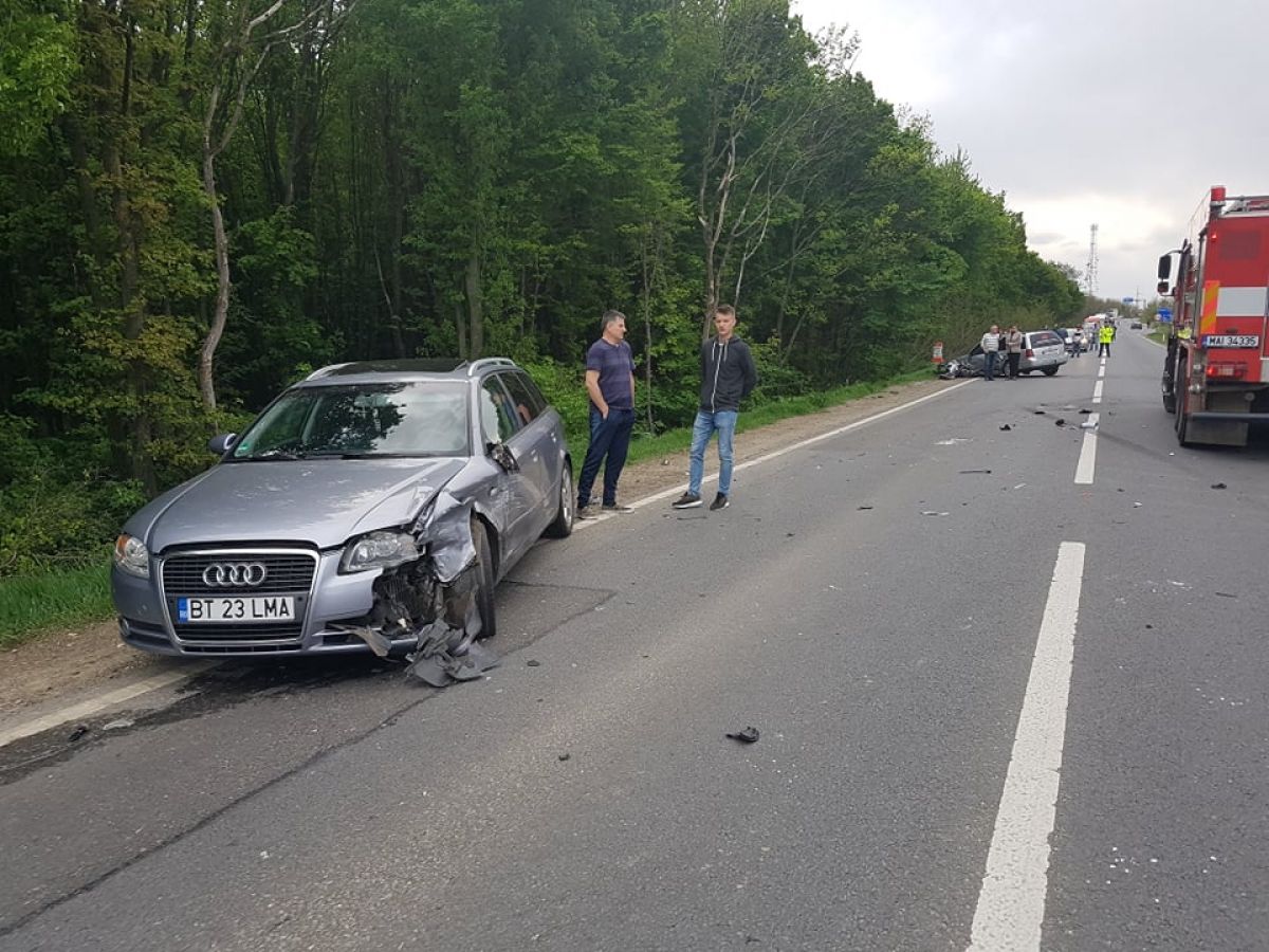 Accidentul a fost produs de un şofer care se afla la volanul unui Volkswagen Passat şi care ar fi pătruns pe contrasens cu intenţia de a depăşi. A izbit frontal VW Sharan care în urma impactului puternic a zburat în şanţul de pe marginea drumului.