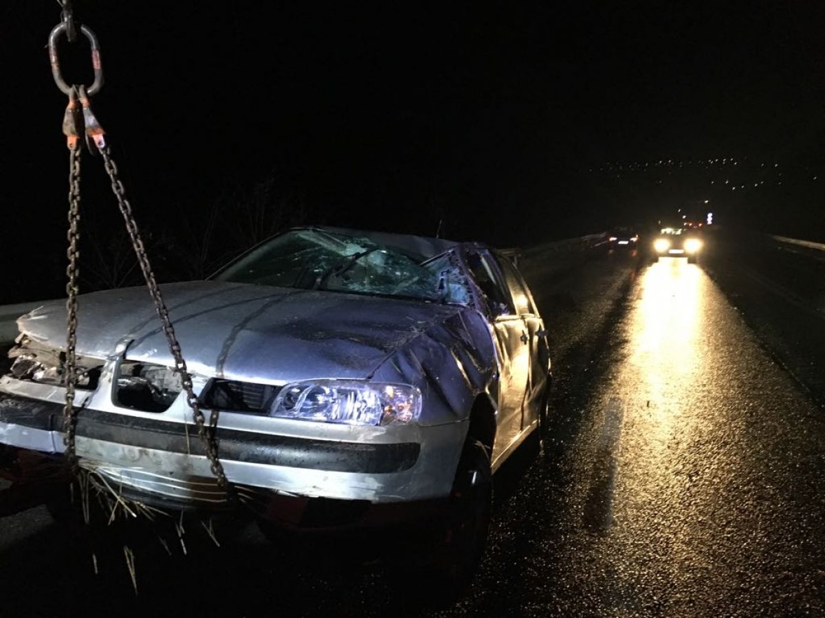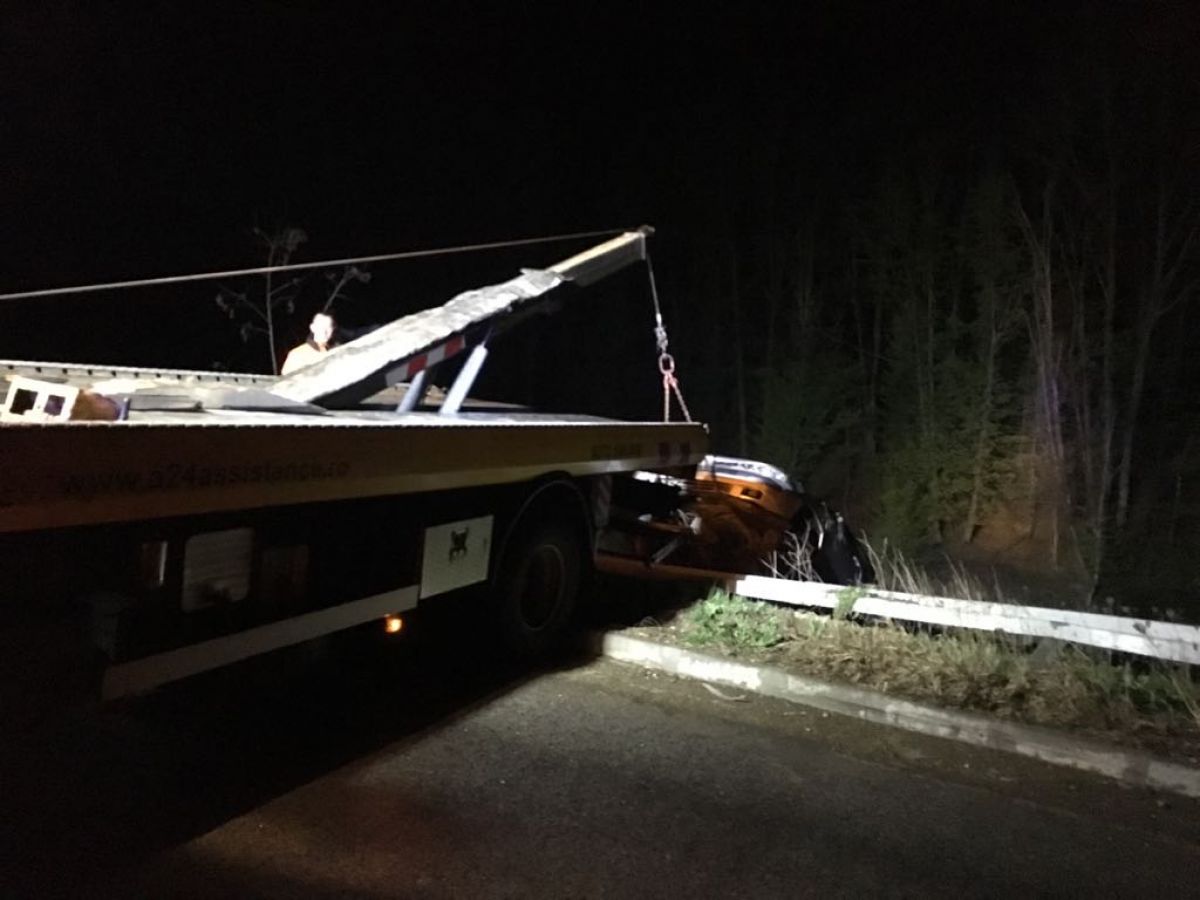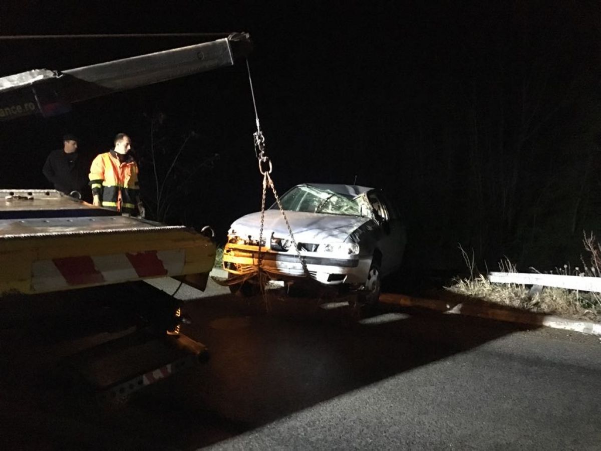 În zona Dealul Mare, șoferul, aflat la volanul unui Seat, a pierdut controlul asupra autoturismului și a părăsit carosabilul. Probabil a intrat cu viteză în curbă, iar asfaltul umed i-a jucat o festă. A tras o sperietură zdravănă fiindcă diferența de nivel era destul de mare, iar mașina s-a oprit la metri buni sub nivelul șoselei.