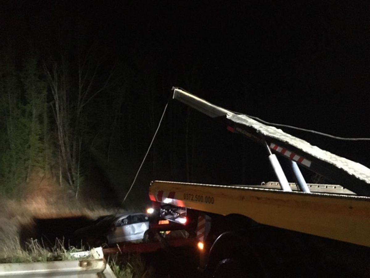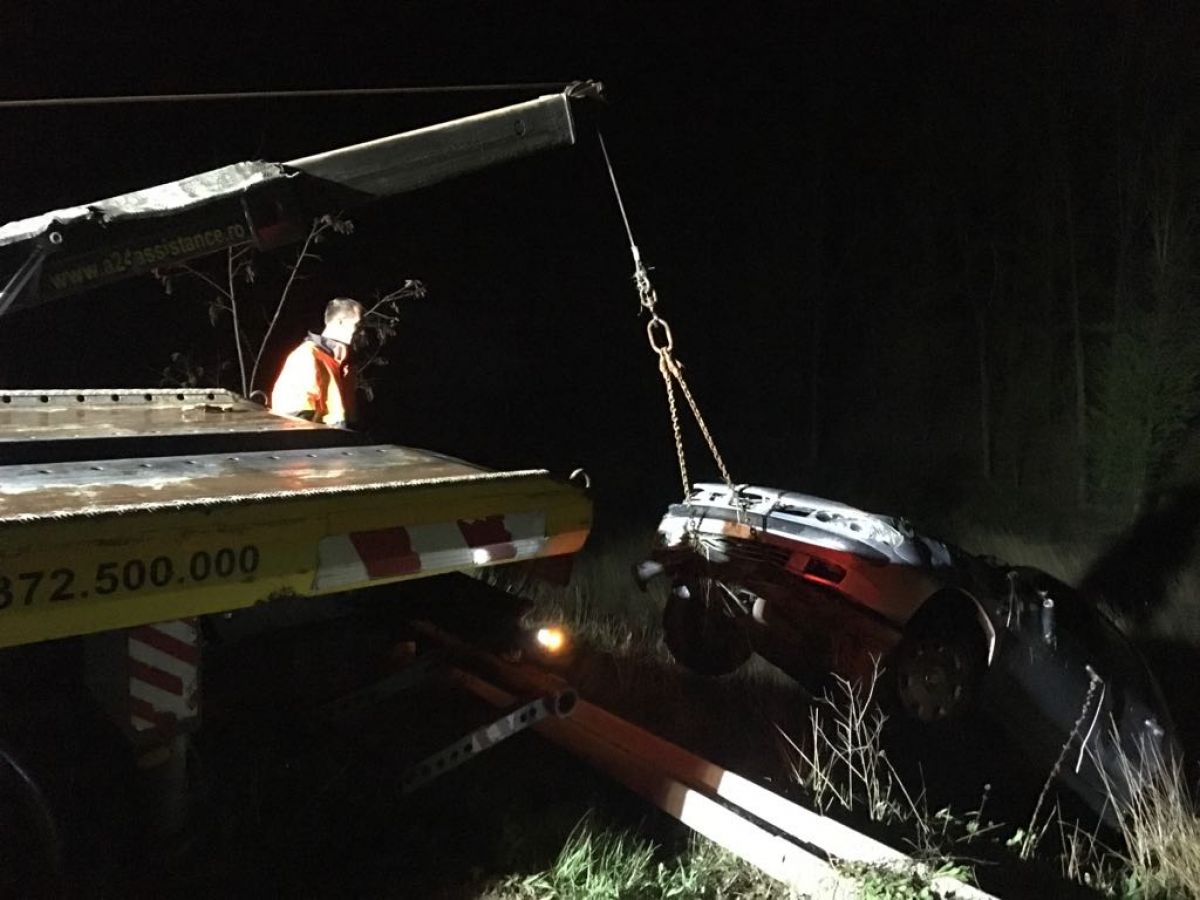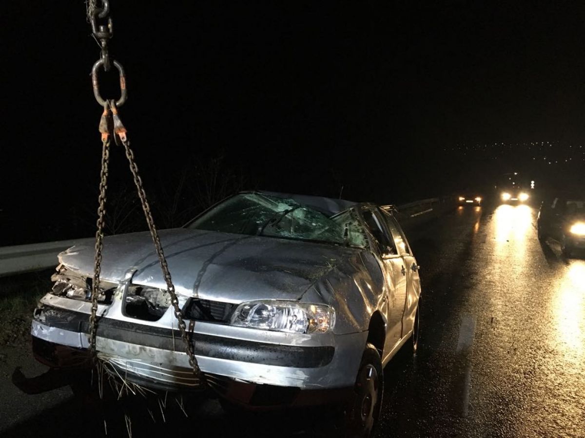 În zona Dealul Mare, șoferul, aflat la volanul unui Seat, a pierdut controlul asupra autoturismului și a părăsit carosabilul. Probabil a intrat cu viteză în curbă, iar asfaltul umed i-a jucat o festă. A tras o sperietură zdravănă fiindcă diferența de nivel era destul de mare, iar mașina s-a oprit la metri buni sub nivelul șoselei.