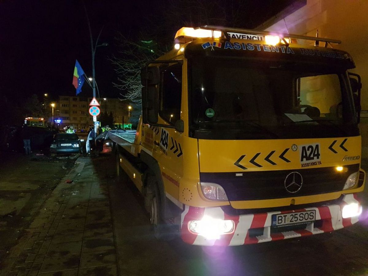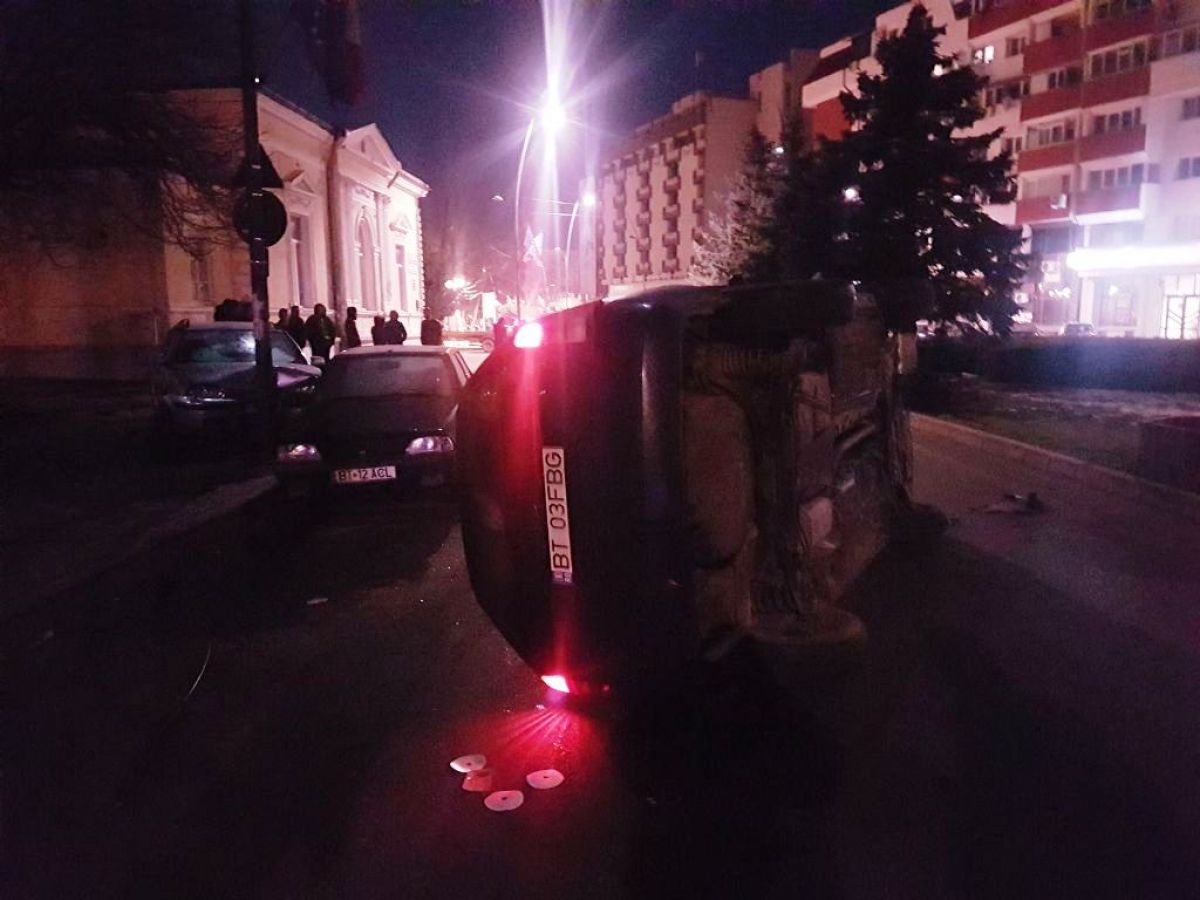 Probabil din cauza vitezei a pierdut controlul asupra volanului și a izbit două automobile care staționau în apropierea sediului PSD Botoșani, un Volkswagen Golf și o Dacia Solenza.