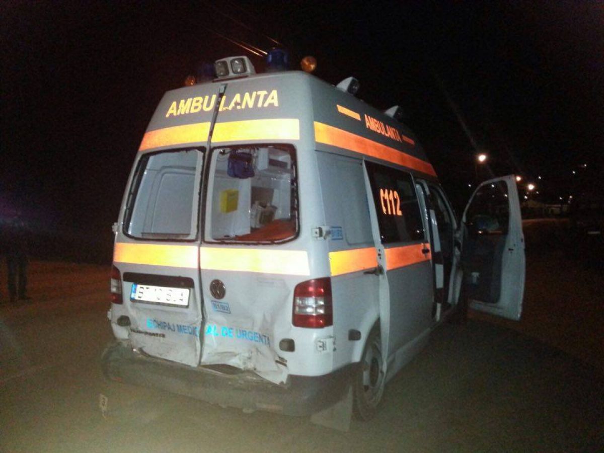 Mașina lui este avariată în partea frontală în timp ce, ambulanța, după impact a rămas fără geamuri. (S.B.)
