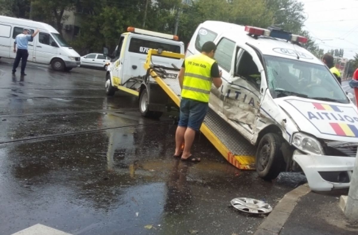 S-a izbit în Loganul poliţiştilor, avariindu-l serios