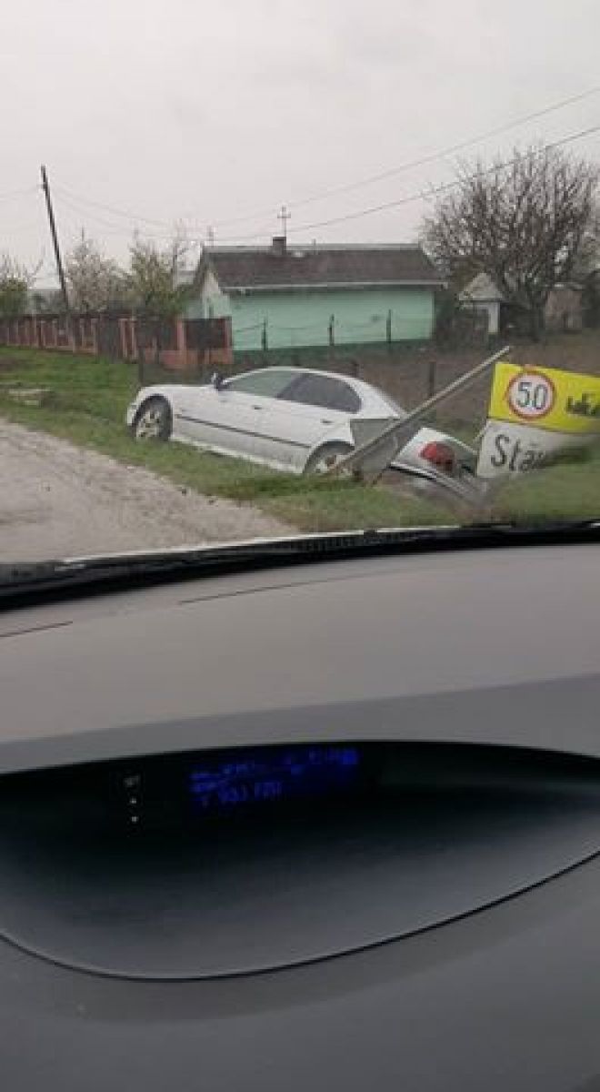 Conducătorul auto, aflat la volanul unui BMW, din cauza vitezei a intrat mai întâi într-un indicator de pe marginea drumului, l-a pus la pământ, după care a ajuns în șanț.