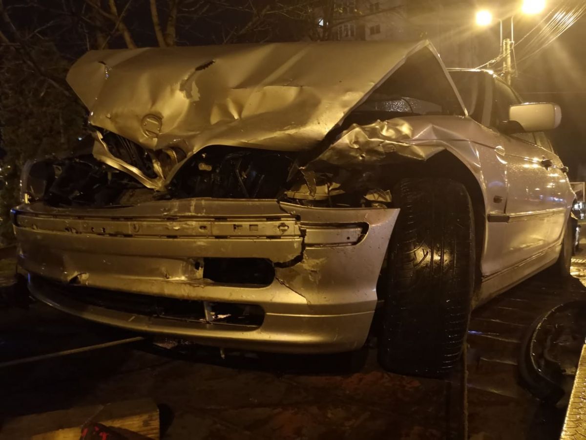 BMW-ul era distrus în partea din față, iar automobilul VW Golf a fost lovit atât de puternic în spate încât luneta s-a făcut țăndări.