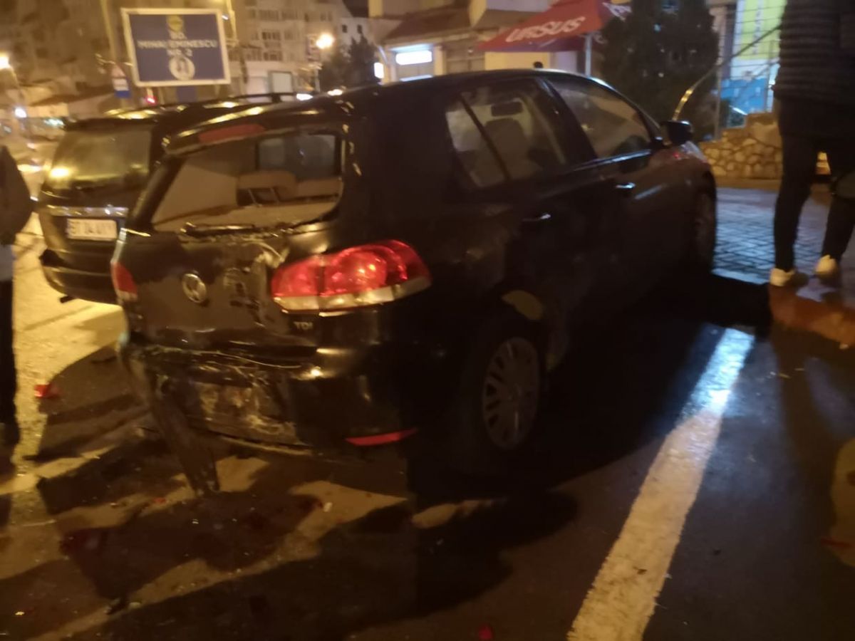 Mașina a părăsit banda normală de mers și a lovit pe rând trei autovehicule parcate regulamentar: un Suzuki de teren, un VW Polo și un Volkswagen Golf.
