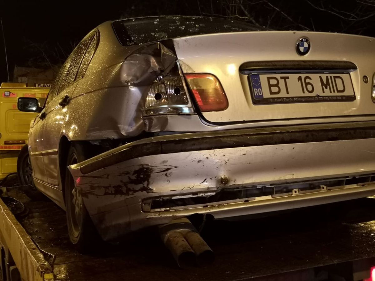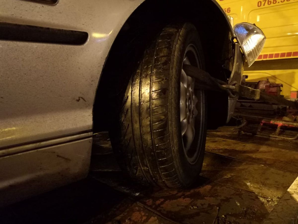 O autospecială de la SOS Savencu a ridicat BMW-ul, iar prin zonă a ajuns și fratele șoferului care susținea că acesta nu era băut, dar că ”l-a furat” carosabilul umed.