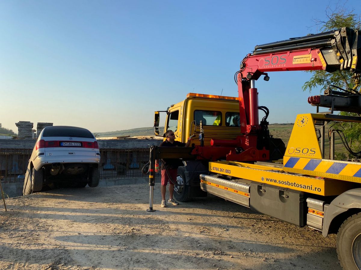 Mașina a fost scoasă de utilajul SOS Botoșani și transportată la un service pe platformă. A suferit avarii serioase în partea din față.