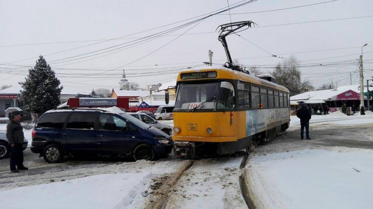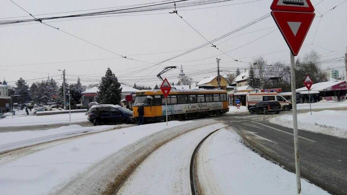 Un Seat Family a intrat în urmă cu puțin timp într-un tramvai de pe linia 101. Accidentul a avut loc în sensul giratoriu de lângă bazar.