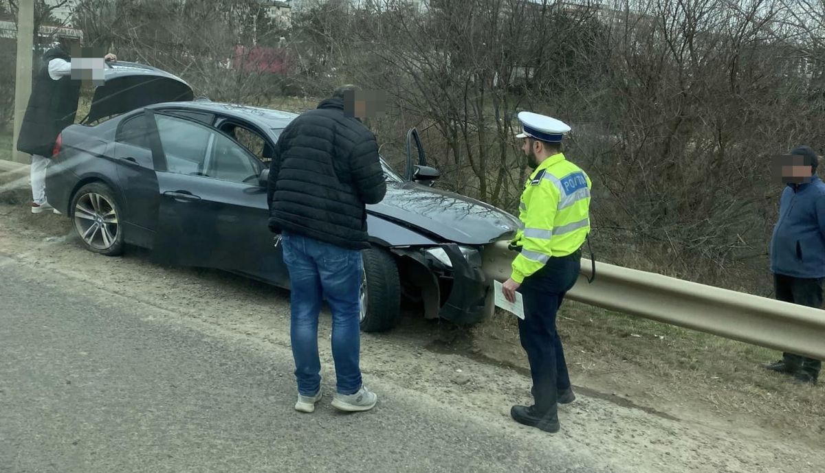 În urma impactului, autoturismul marca BMW a fost avariat.