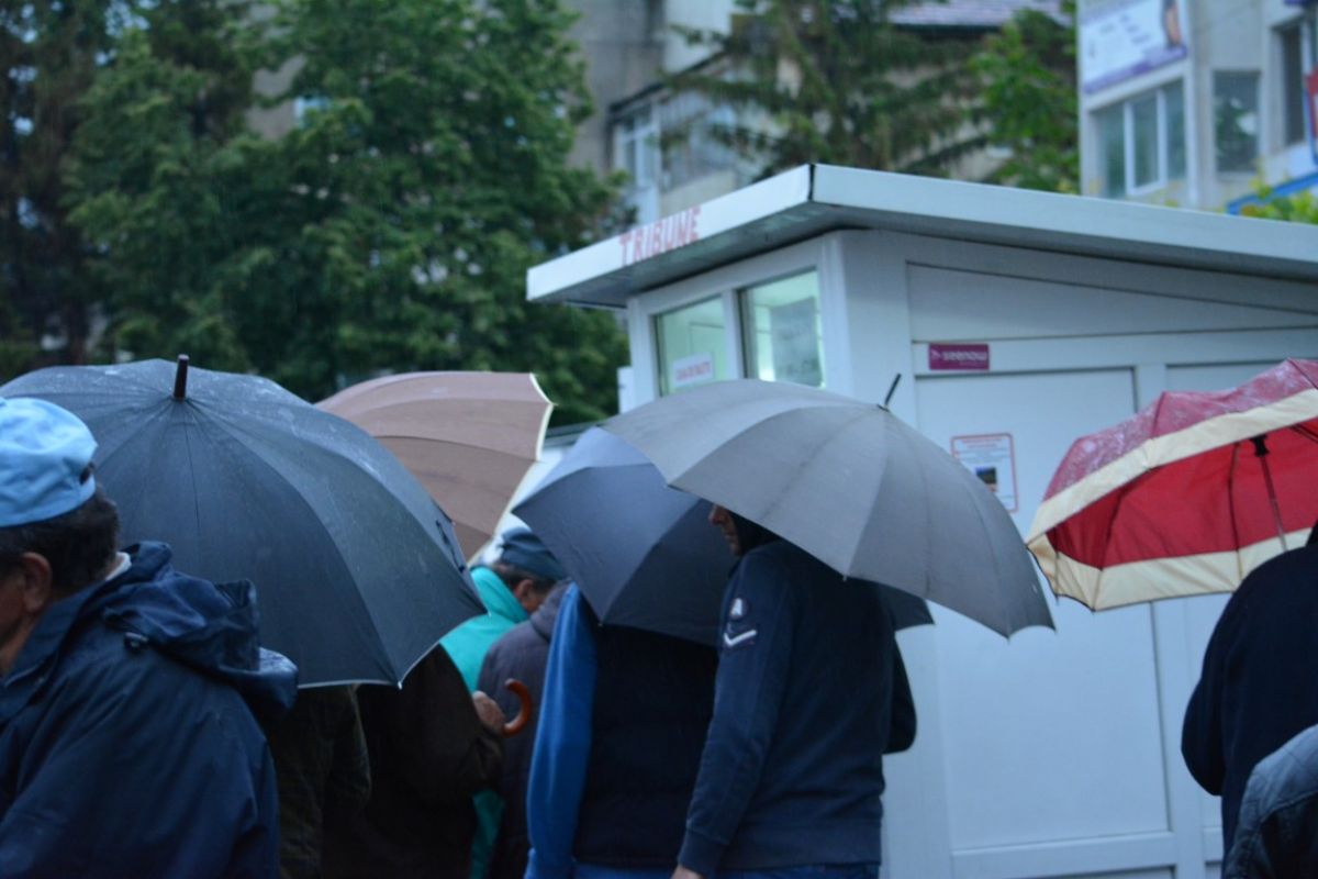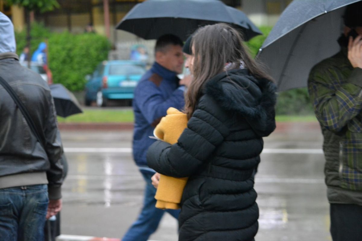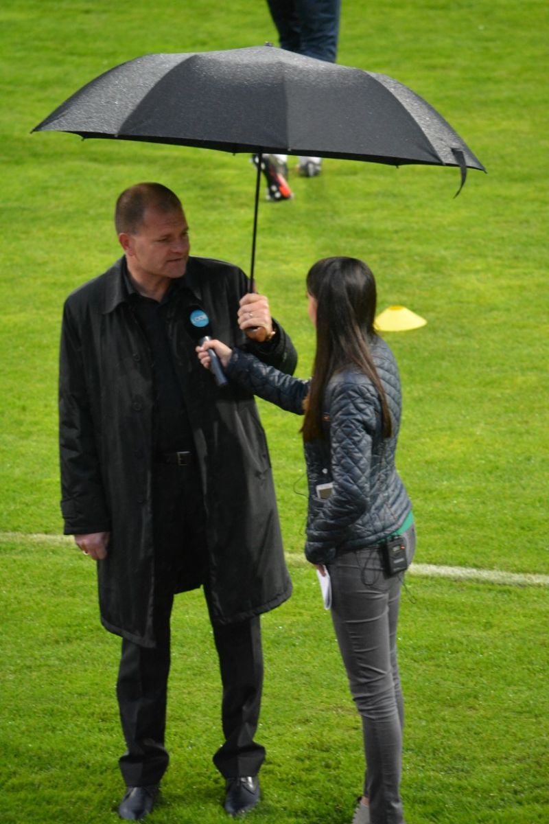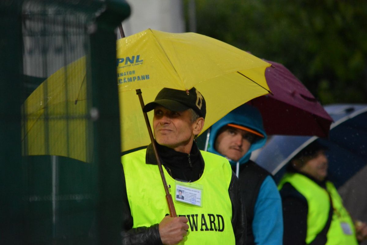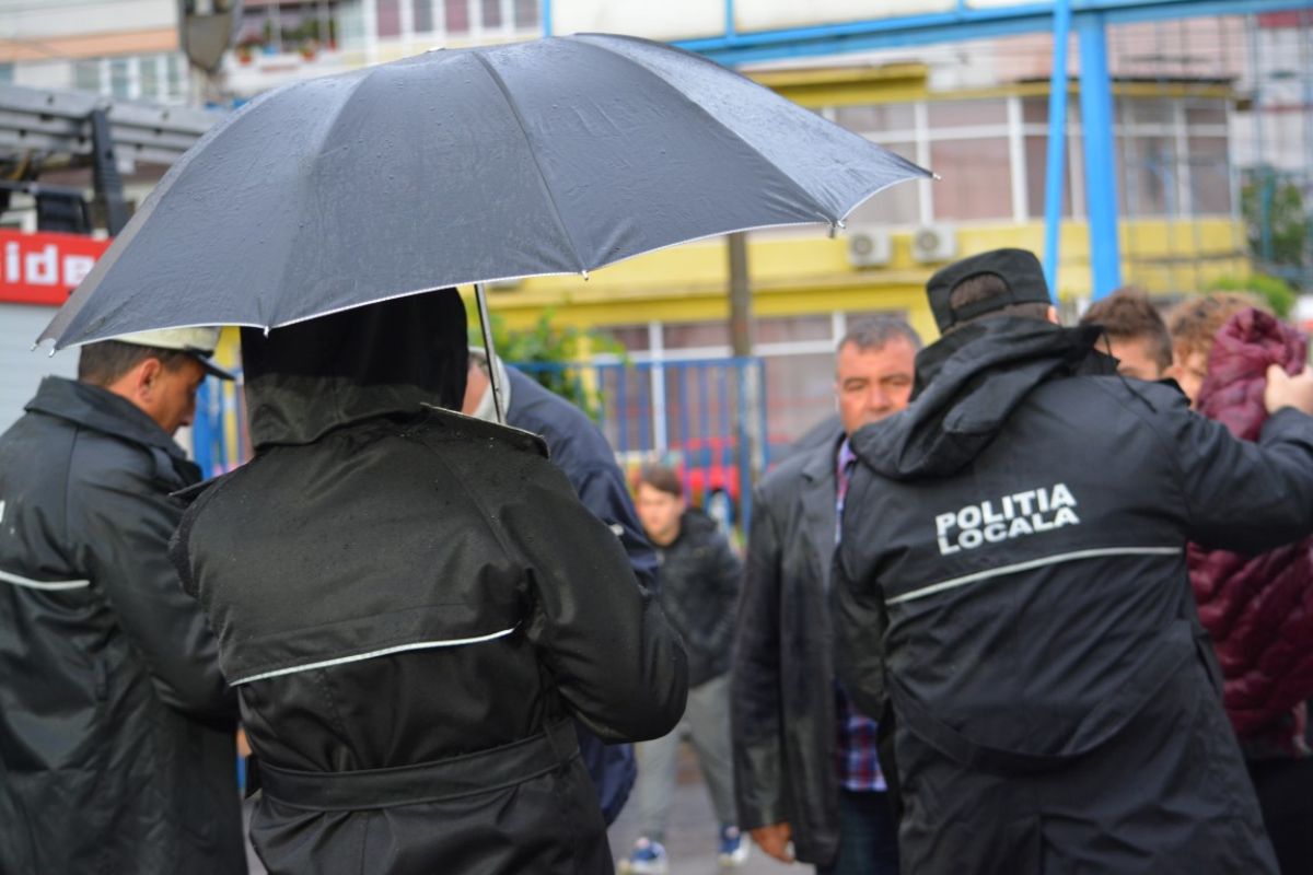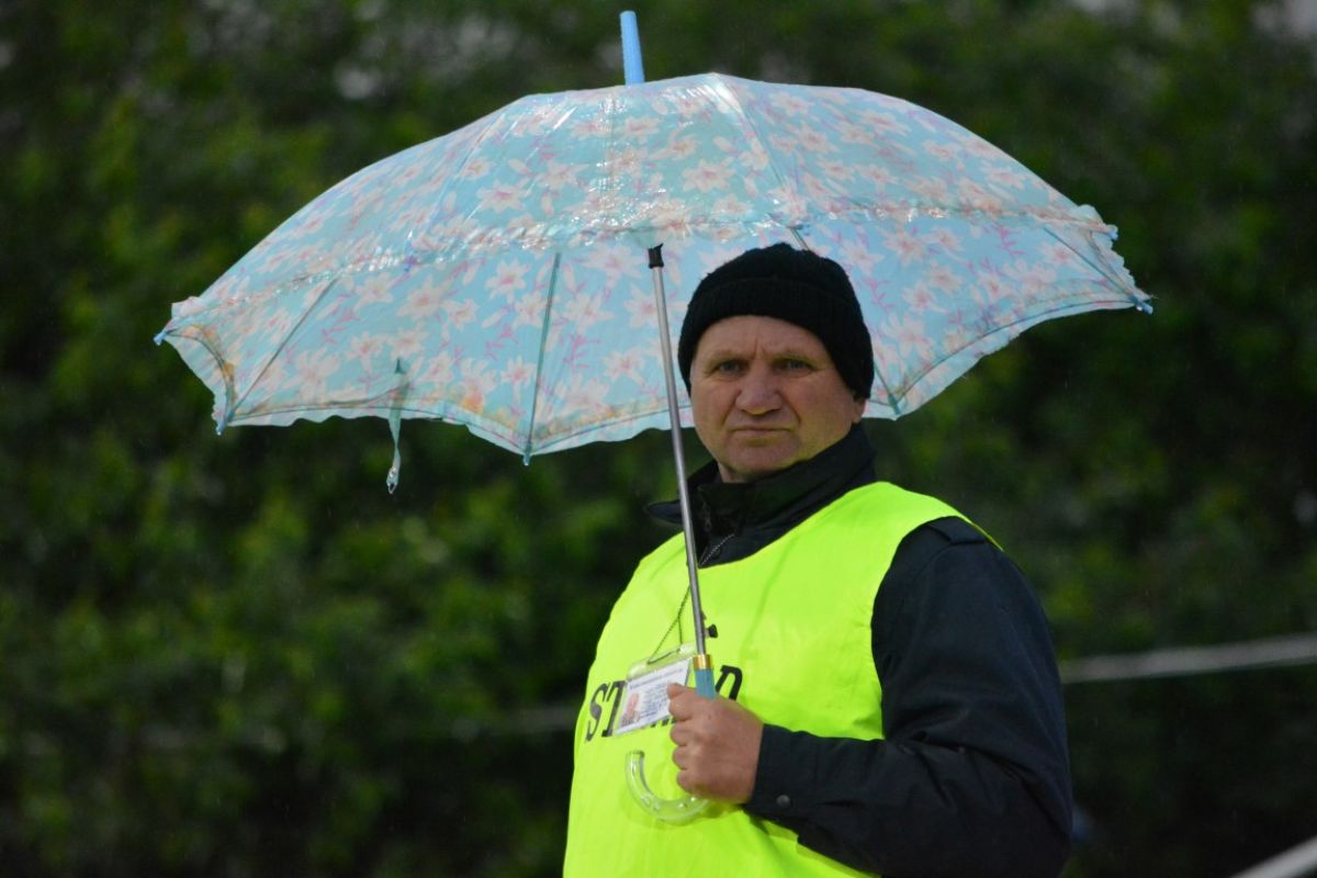 În jur de 1.000 de spectatori au înfruntat totuşi vremea nefavorabilă şi s-au deplasat la Stadionul Municipal. Pentru a face faţă precipitaţiilor abundente microbiştii au venit în pelerine de ploaie, în geci de fâş, cu tot felul de coifuri şi de căciuli şi, bineînţeles, o puzderie de umbrele. Unii dintre aceştia par de-a dreptul camuflaţi. Vremea este sfidată însă de un fan care a luat loc la peluza Ion Bordeanu şi care vizionează confruntarea în pantaloni scurţi. (S.B.)