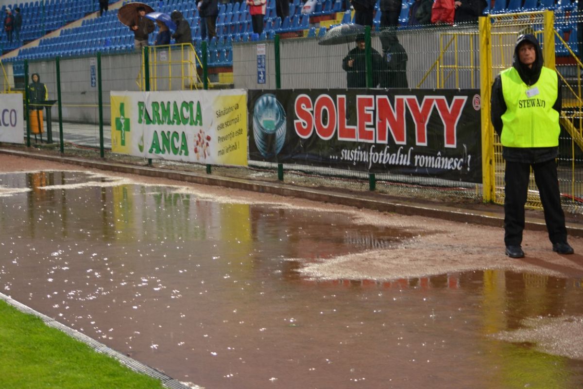 FC Botoşani – CSU Craiova, meci din etapa a XI – a play-out – ului Ligii 1 se desfăşoară în condiţii speciale din cauza ploii care a cade fără încetare de mai bine de 12 ore.