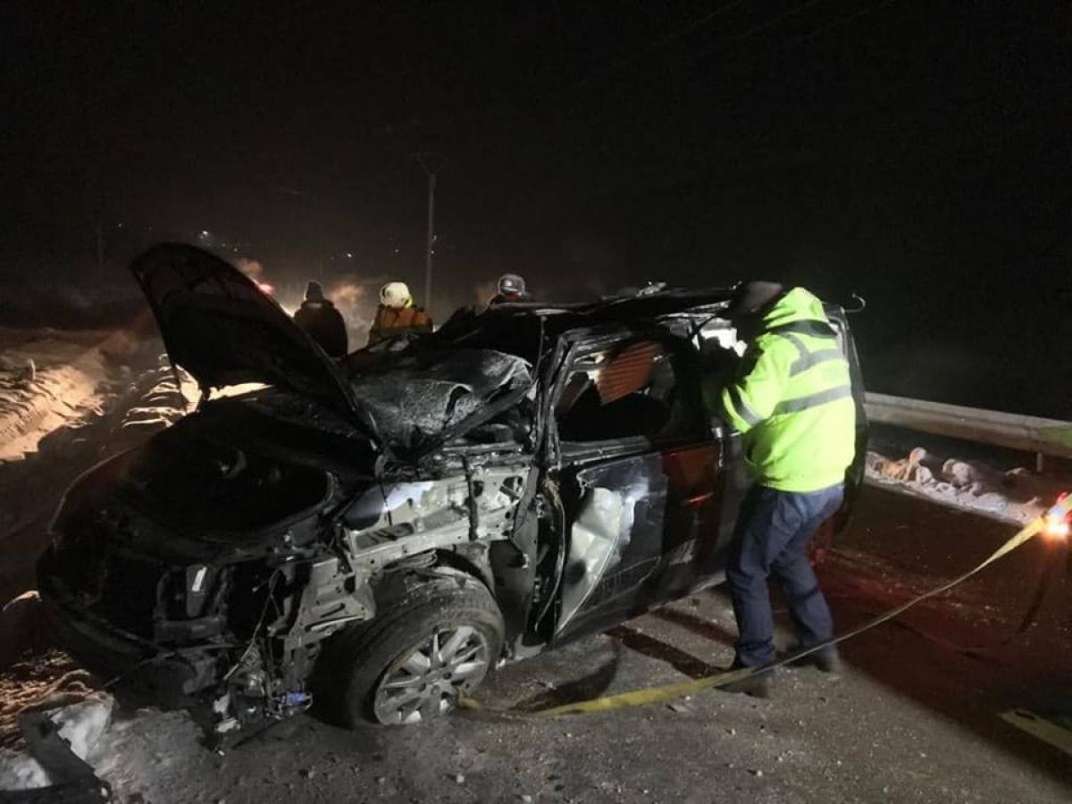 În urma accidentului mașina a ajuns în șanțul de pe cealaltă parte a drumului, de unde a început să se rostogolească și s-a oprit pe cupolă.