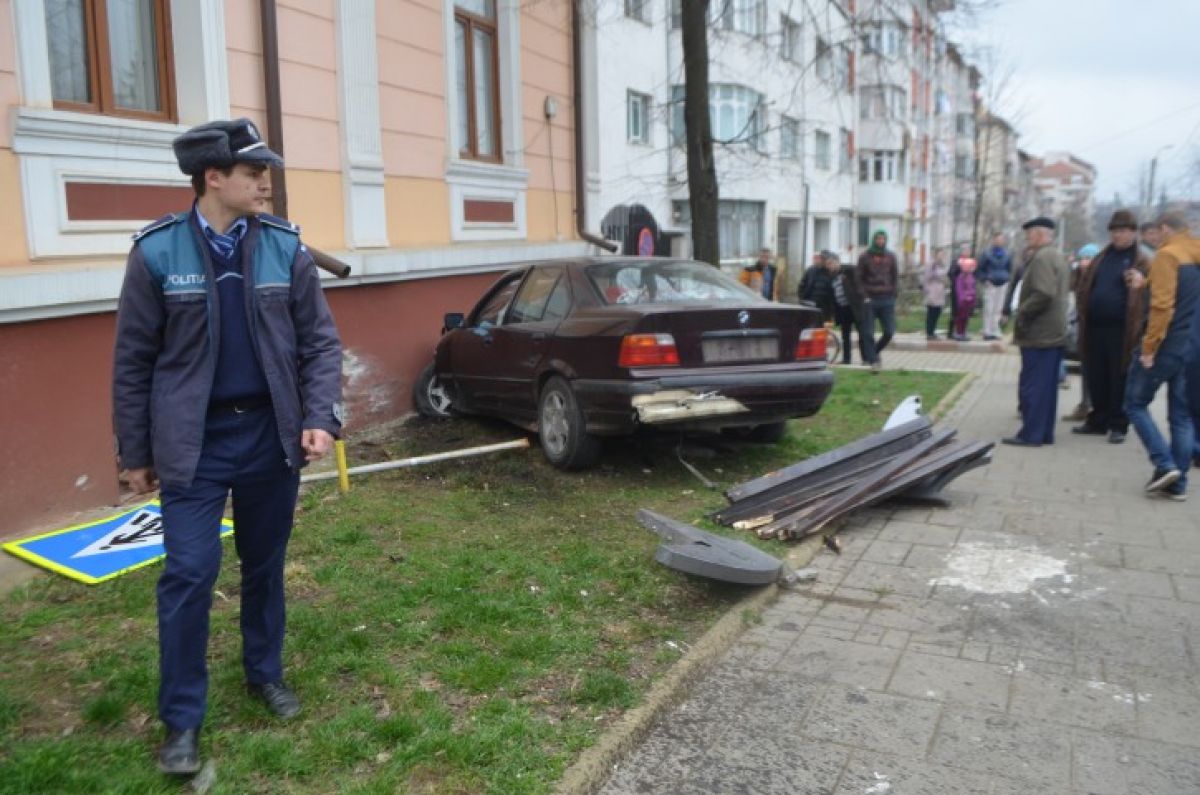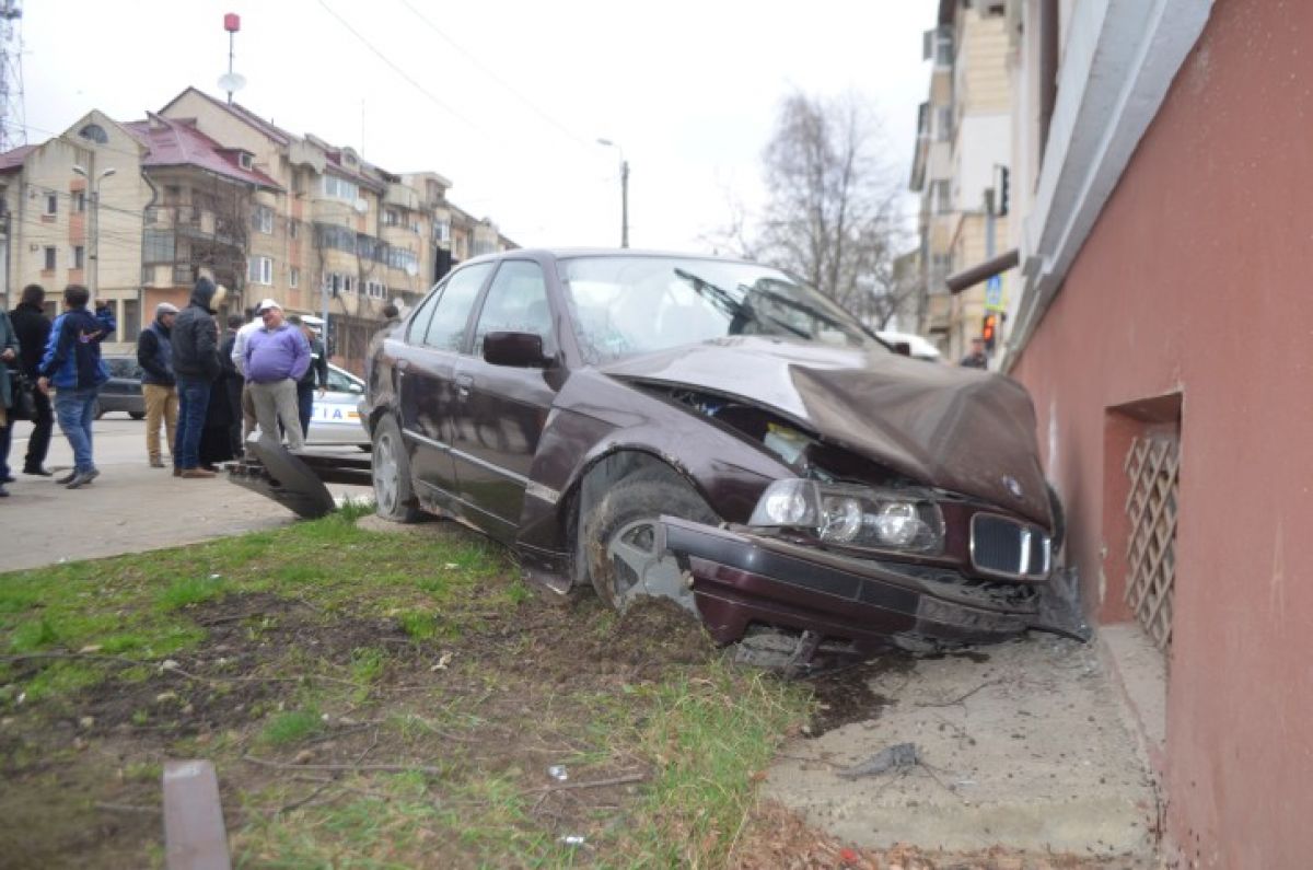 Un tânăr cu o bere la bord a intrat cu BMW-ul în sediul de la Drumuri și Poduri – GALERIE FOTO