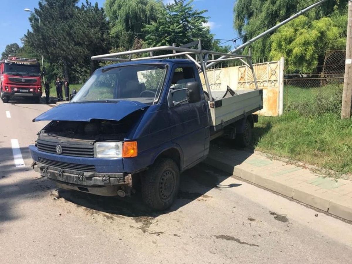 Mașina s-a învârtit pe șosea, a ajuns pe contrasens și a izbit puternic un stâlp de iluminat, pe care l-a dărâmat.