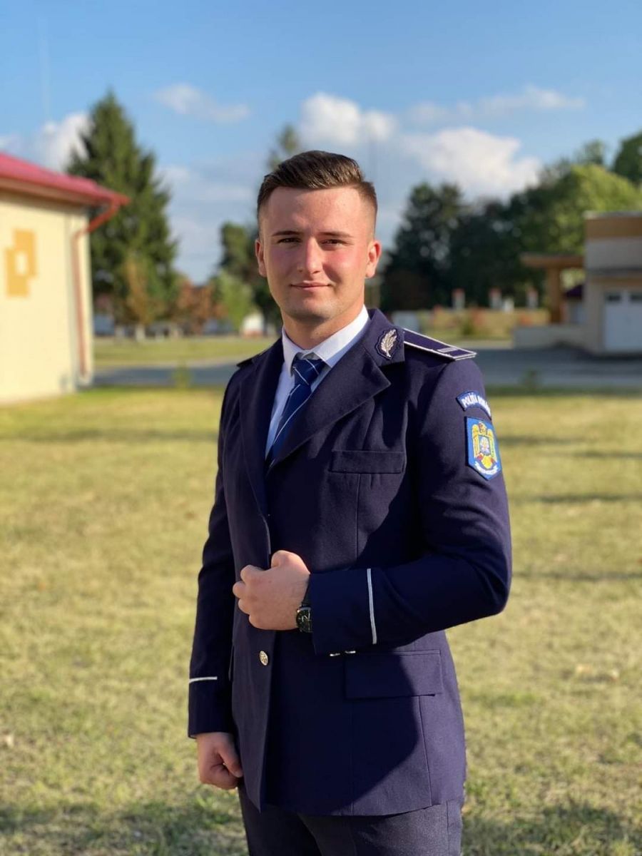 Polițistul care a intervenit, agent de poliție Prisăcaru Andrei-Vlăduț, are 23 de ani, este împuternicit șeful P.P. Roșiești, este originar din comuna George Enescu, județul Botoșani, și este absolvent al promoției decembrie 2019 a Școlii Naționale de Agenți de Poliție „Vasile Lascăr” Câmpina.
