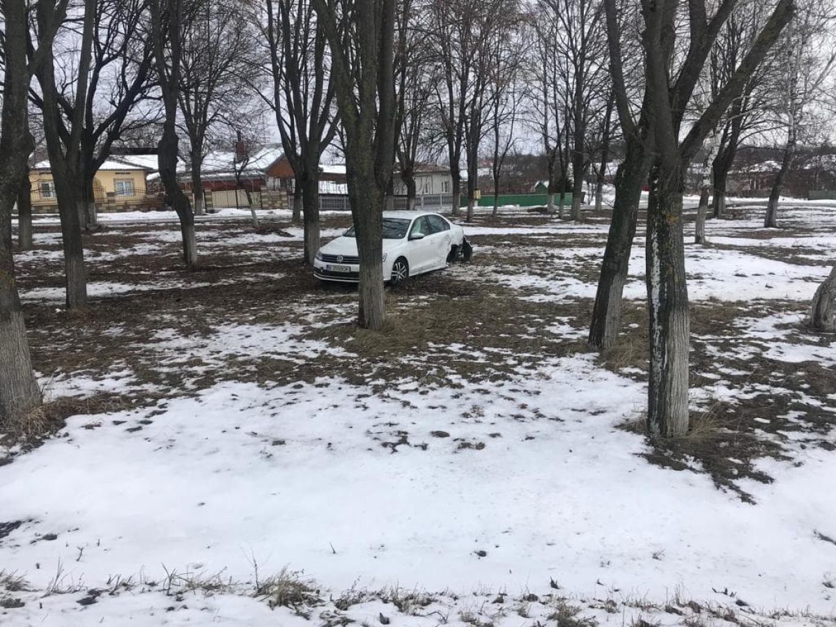 Într-o curbă, probabil din cauza carosabilului umed a pierdut controlul asupra mașinii și a ajuns printre copaci. Autoturismul a fost avariat mai ales în partea din spate, rămânând fără una dintre roți.