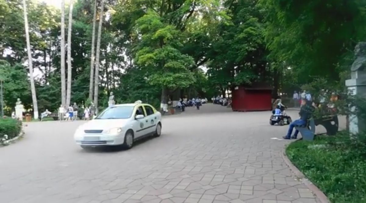 De aceasta dată isprava s-a consemnat chiar în mijlocul Parcului Mihai Eminescu, acolo unde un șofer de taxi a intrat cu mașina ca pe stradă.