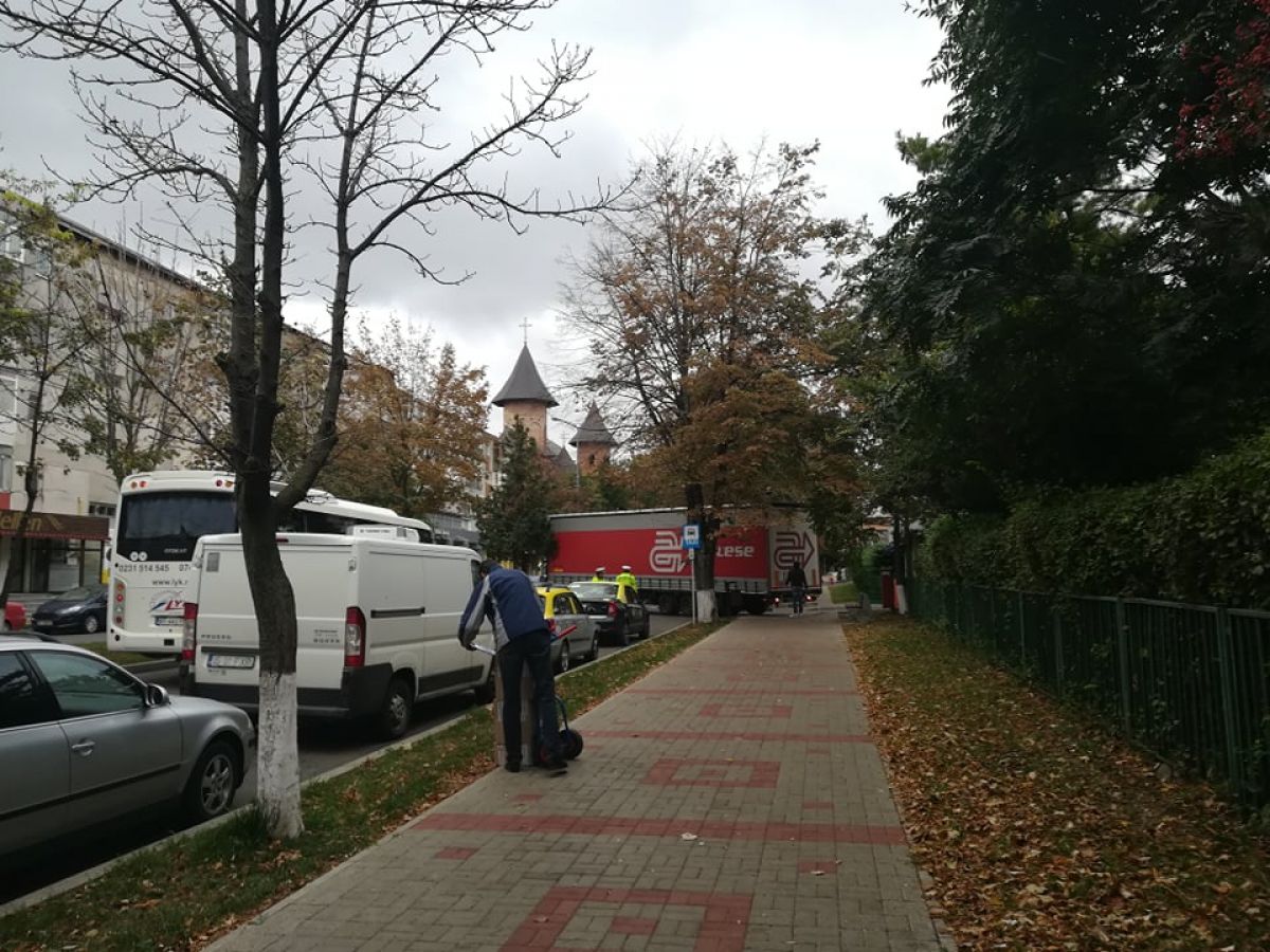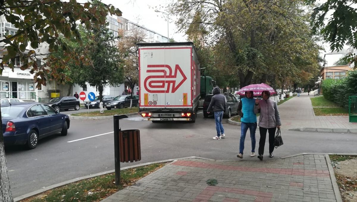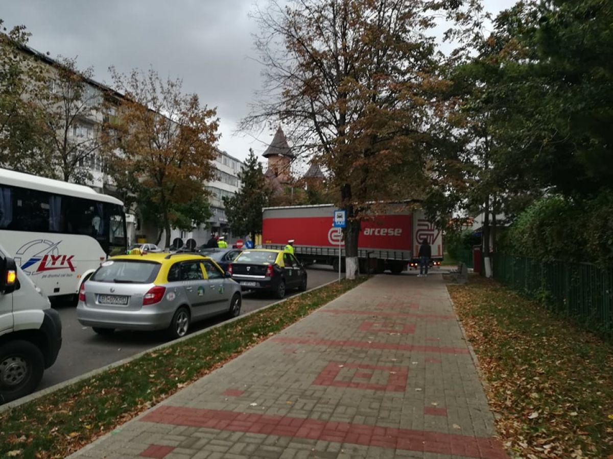 Un TIR înmatriculat în Neamţ a obstrucţionat traficul rutier în faţa Secției de Obstetrică și Ginecologie a Spitalului Județean Mavromati.