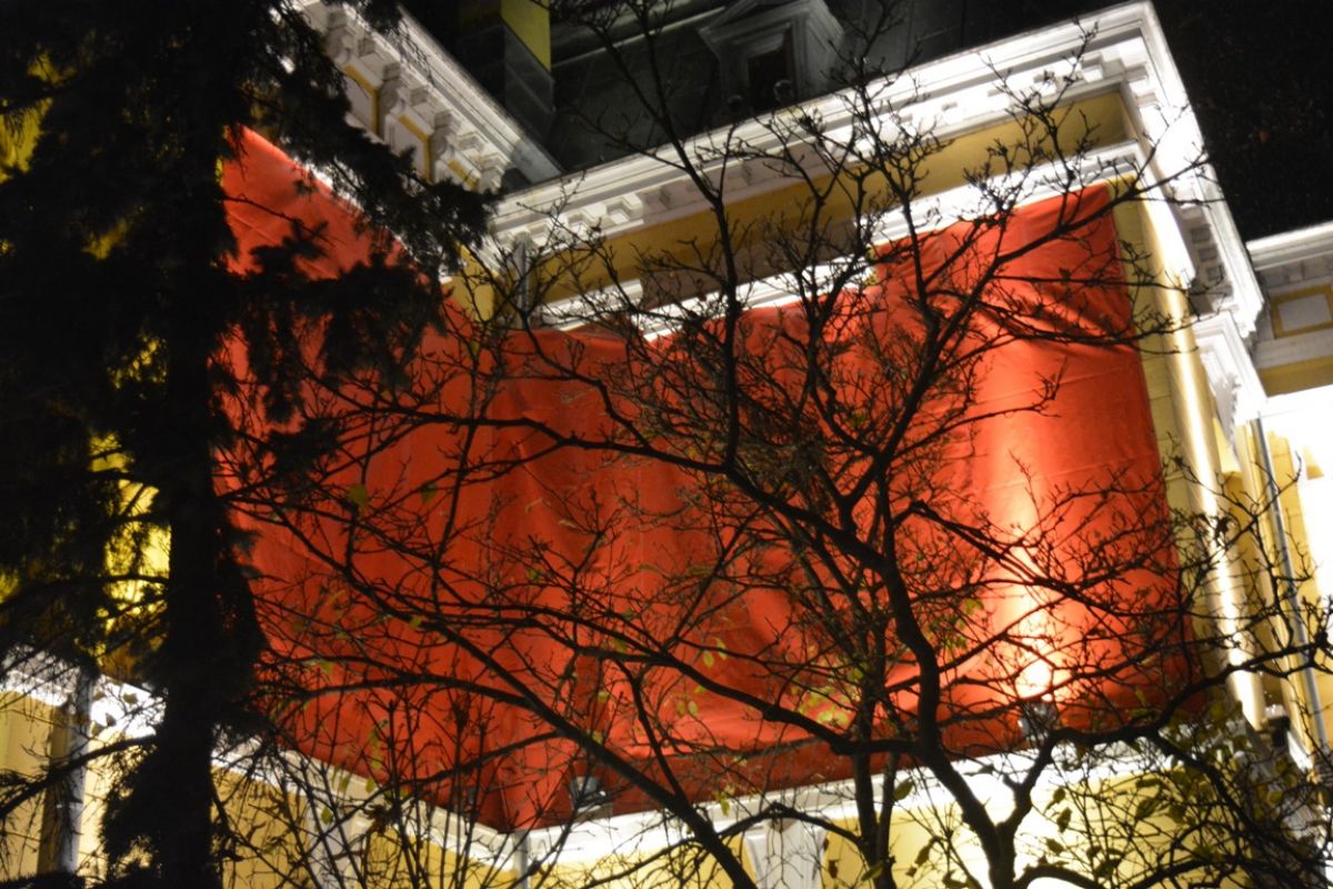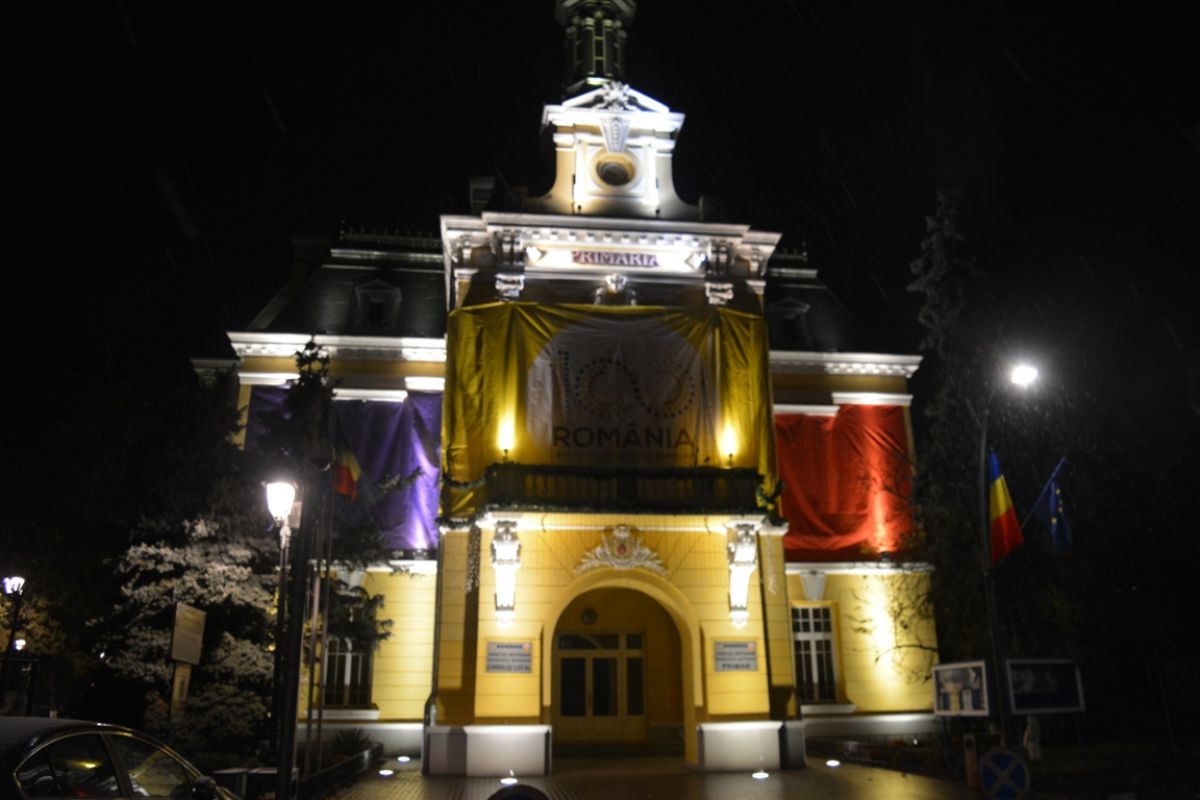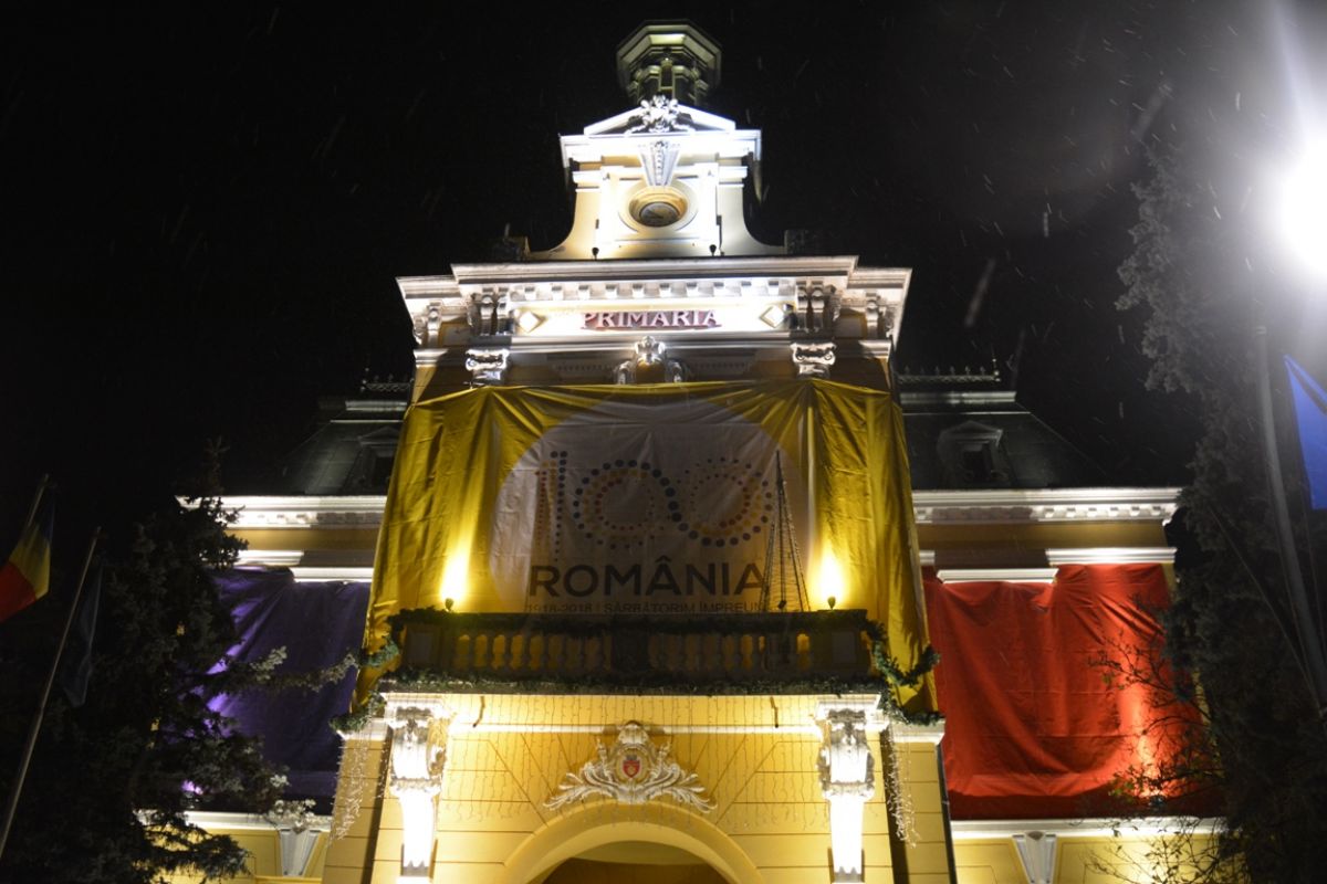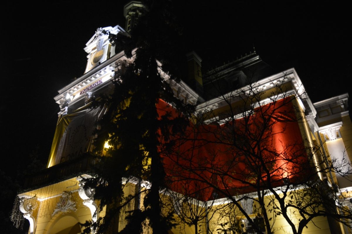 A făcut-o vineri după-amiază municipalitatea, care a îmbrăcat chiar clădirea Primăriei din Piaţa Revoluţiei într-un imens drapel.