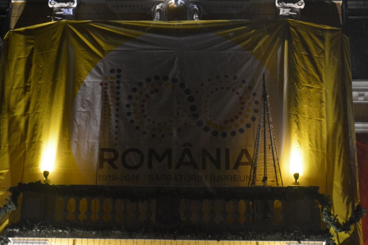 Pe culoarea galbenă apare şi sigla Anului Centenar cu inscripţia „1918 – 2018 sărbătorim împreună”.