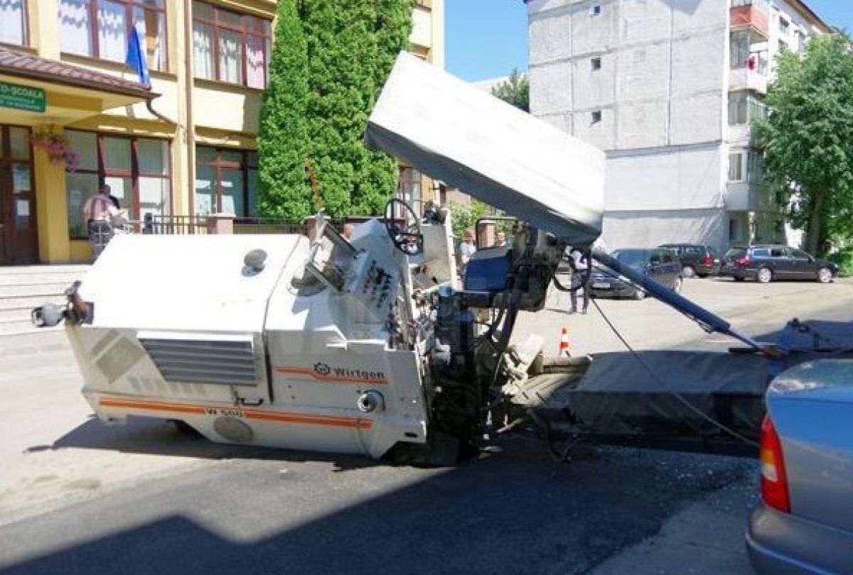 Incidentul s-a petrecut ieri în faţa Şcolii Nr. 10 din cartierul Burdujeni al municipiului Suceava. Ironia în cazul acestui accident este că autofreză s-a răsturnat după ce unul dintre canale a cedat, asfaltul „înghiţind” una dintre roţi.