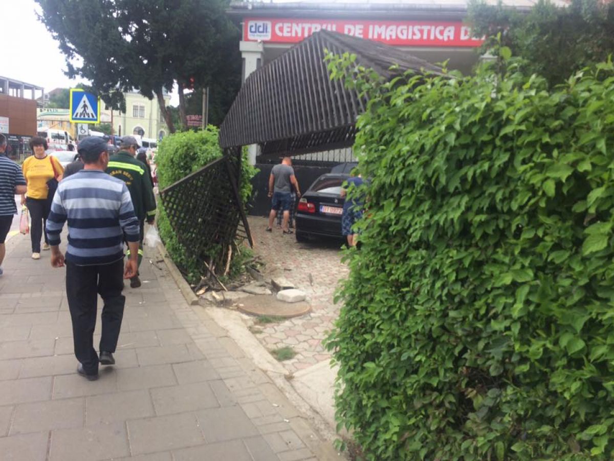 Șoferul unui autoturism marca BMW a ajuns cu mașina în clădirea unei firme din municipiu după ce s-a izbit mai întâi de un gard.