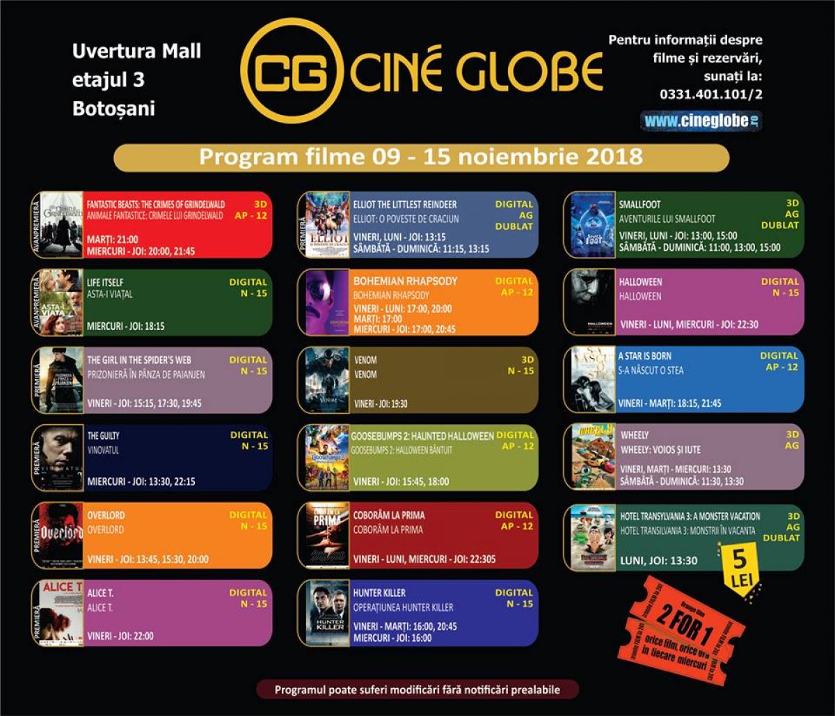 Botoşănenii dornici să se delecteze cu un film de excepţie sunt aşteptaţi la Cinema Unirea sau la Cine Globe. O proiecţie specială a ajuns pe marile ecrane de la Botoşani.