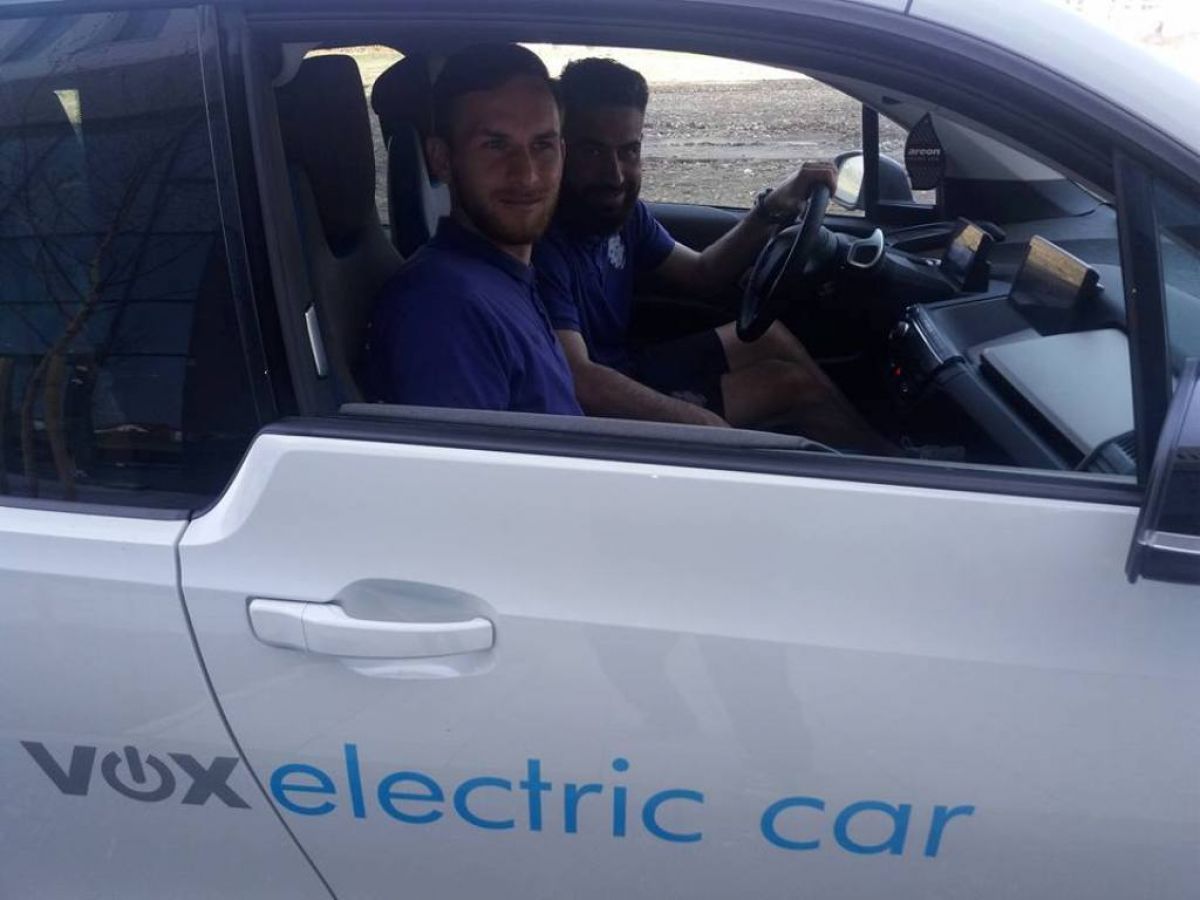 Raţ şi Cînu au ocupat locurile din faţă ale aceleiaşi maşini, iar fundaşul central e de părere că automobilele electrice sunt viitorul.