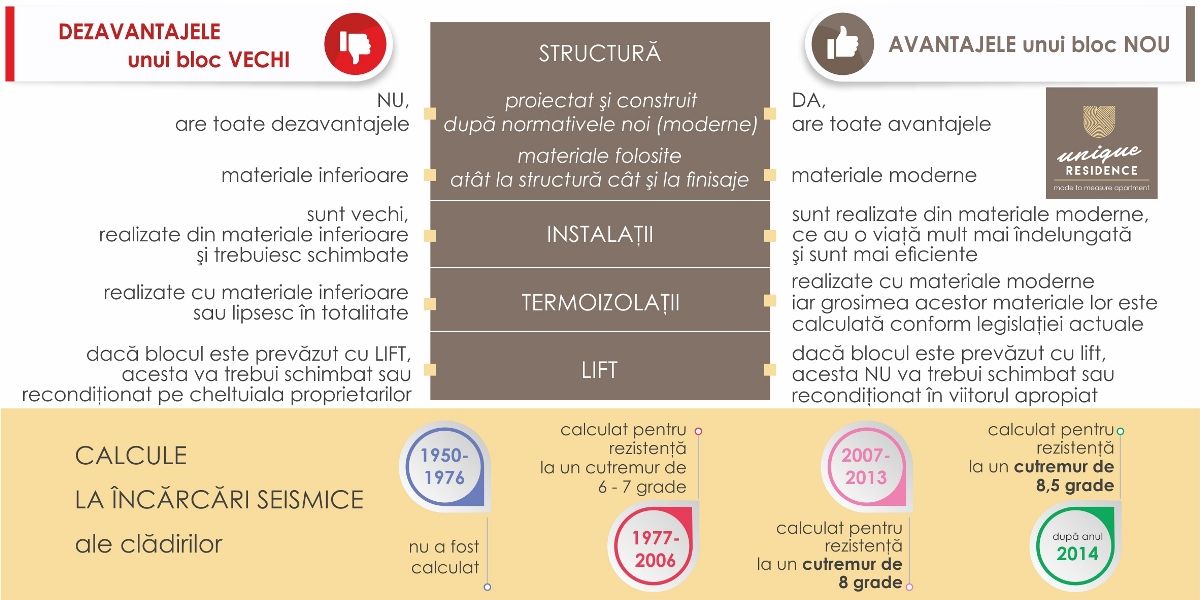 UNIQUE Residence nu face nici un rabat și investește continuu când vine vorba despre realizarea unei creșteri semnificative a nivelurilor de siguranţă seismică al noilor sale clădiri și pe care proiectanţii săi sunt obligaţi să le atingă - Conform Normelor de Proiectare la Acţiunea Seismică, respectiv Codul de proiectare armonizat la nivel european „Eurocod 8 - Proiectarea structurilor pentru rezistenţa la cutremur” cu anexele naţionale, şi ultimul normativ de proiectare seismică P100-1/2013.