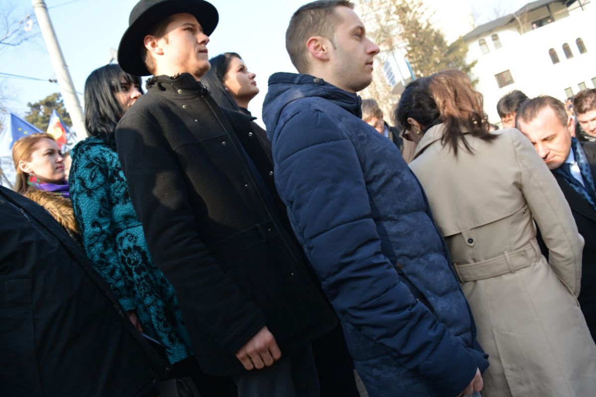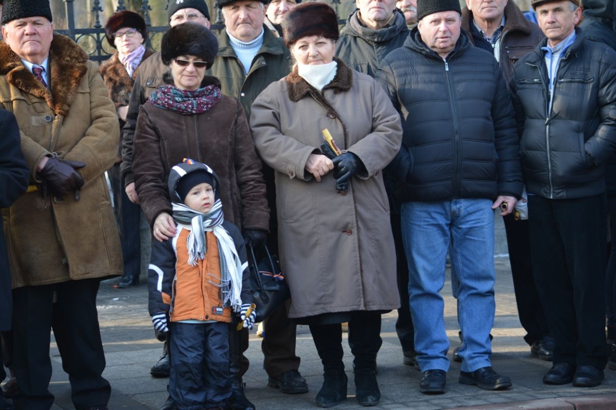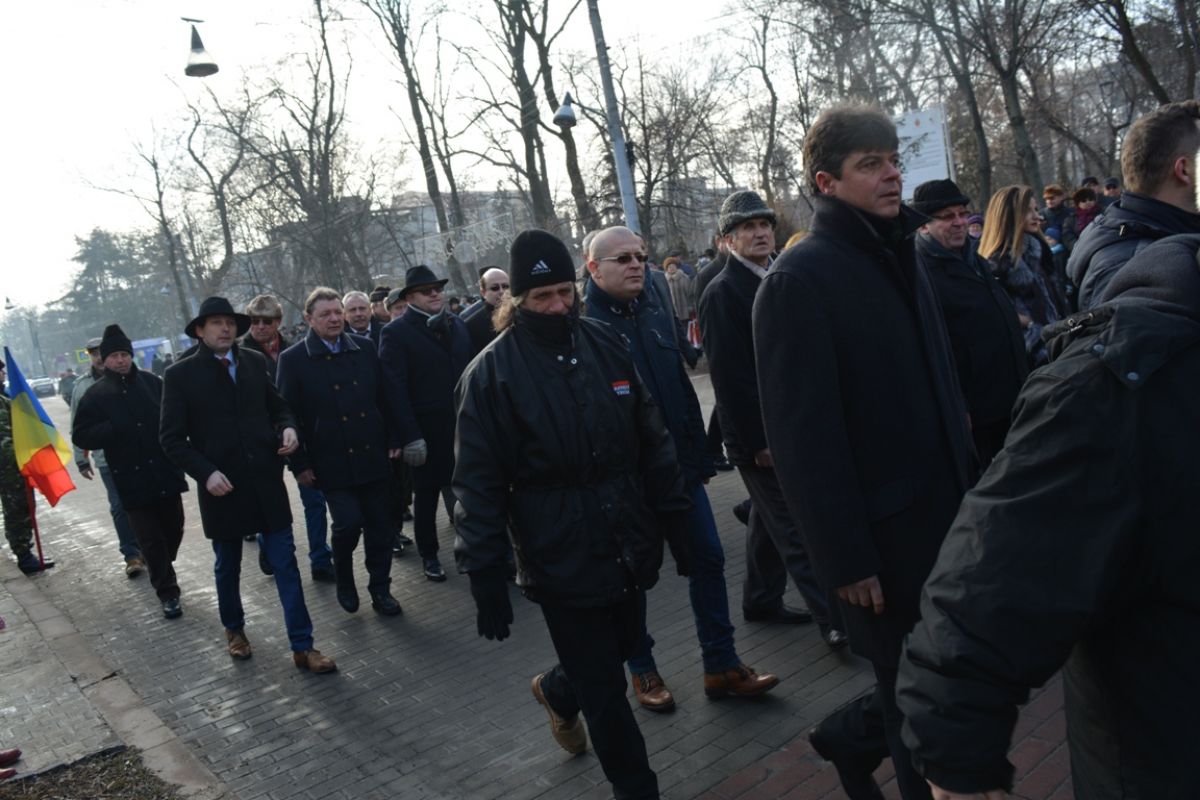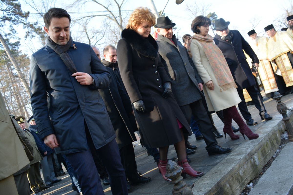După slujba oficiată de un sobor format din opt preoţi şi depunerea de coroane, speaker-ul militar a îndemnat lumea să se prindă în horă. Câteva zeci de secunde cei prezenţi s-au codit să o facă, până ce câţiva liberali au spart gheaţa şi au ieşit în stradă, alături de ei prinzându-se ulterior şi PSD-iştii, dar şi ceilalţi participanţi la manifestare.