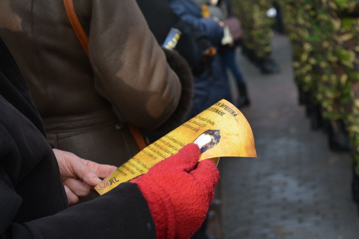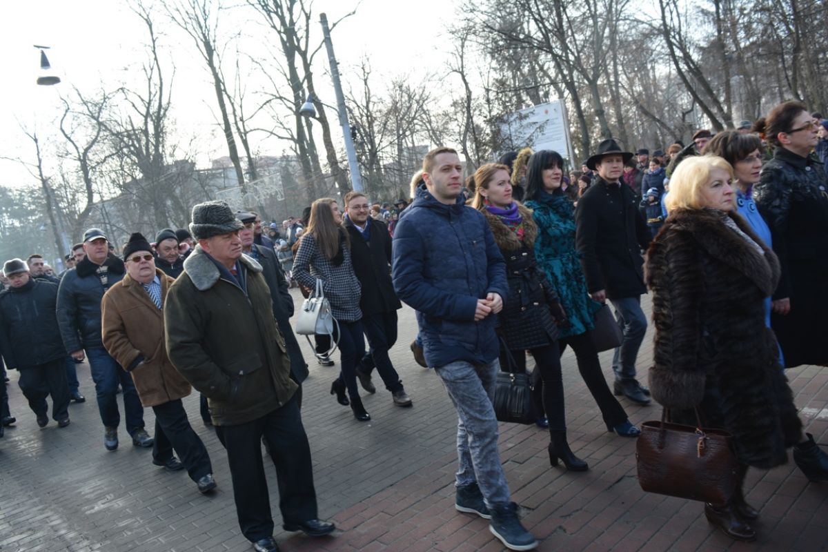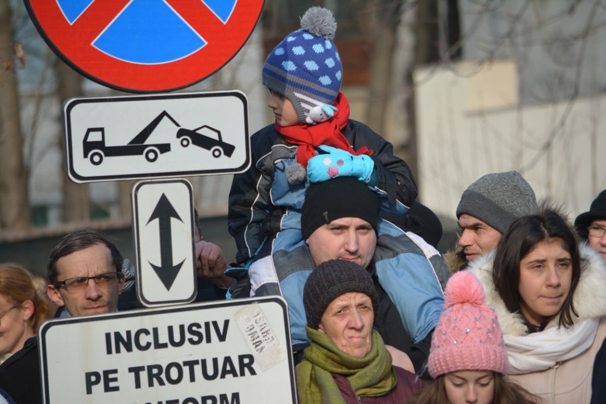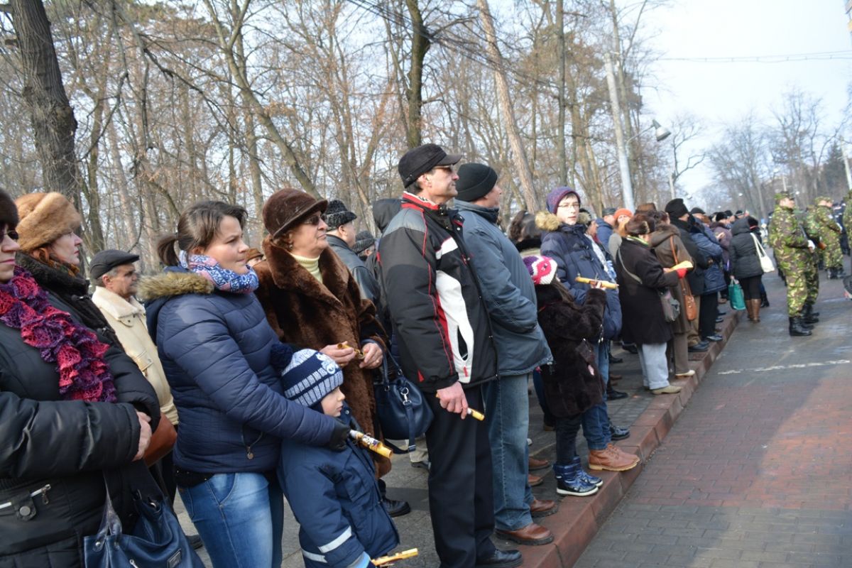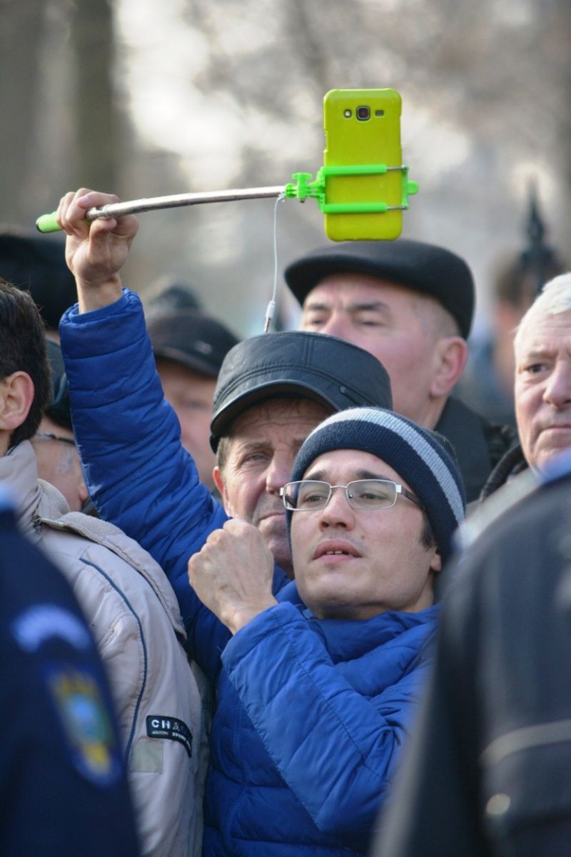 După slujba oficiată de un sobor format din opt preoţi şi depunerea de coroane, speaker-ul militar a îndemnat lumea să se prindă în horă. Câteva zeci de secunde cei prezenţi s-au codit să o facă, până ce câţiva liberali au spart gheaţa şi au ieşit în stradă, alături de ei prinzându-se ulterior şi PSD-iştii, dar şi ceilalţi participanţi la manifestare.