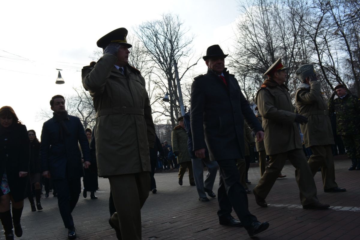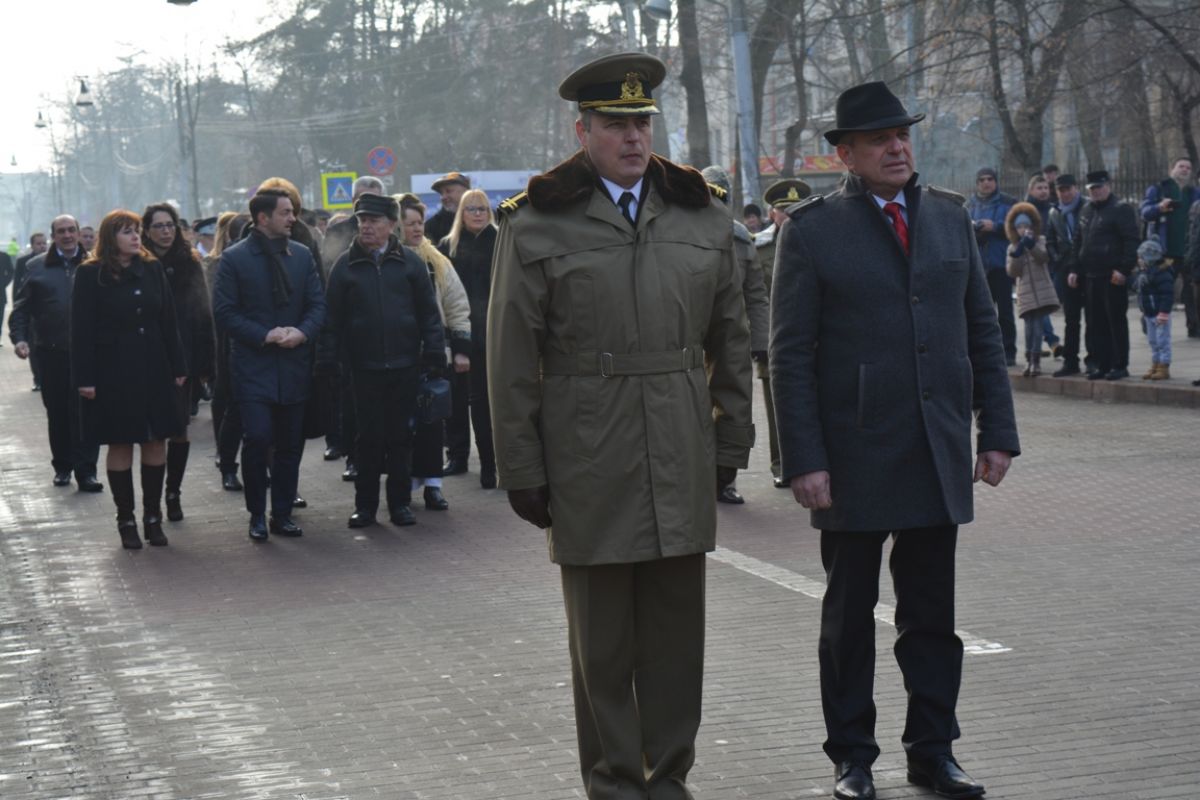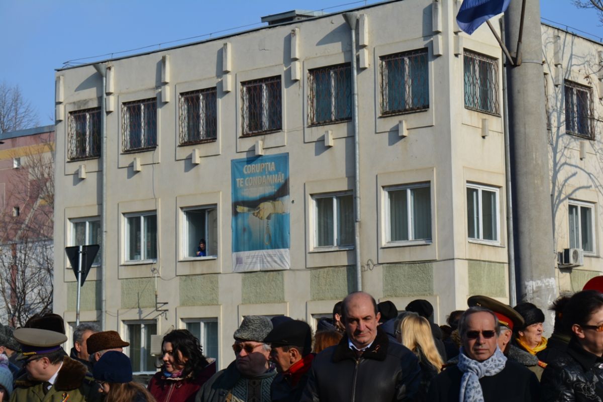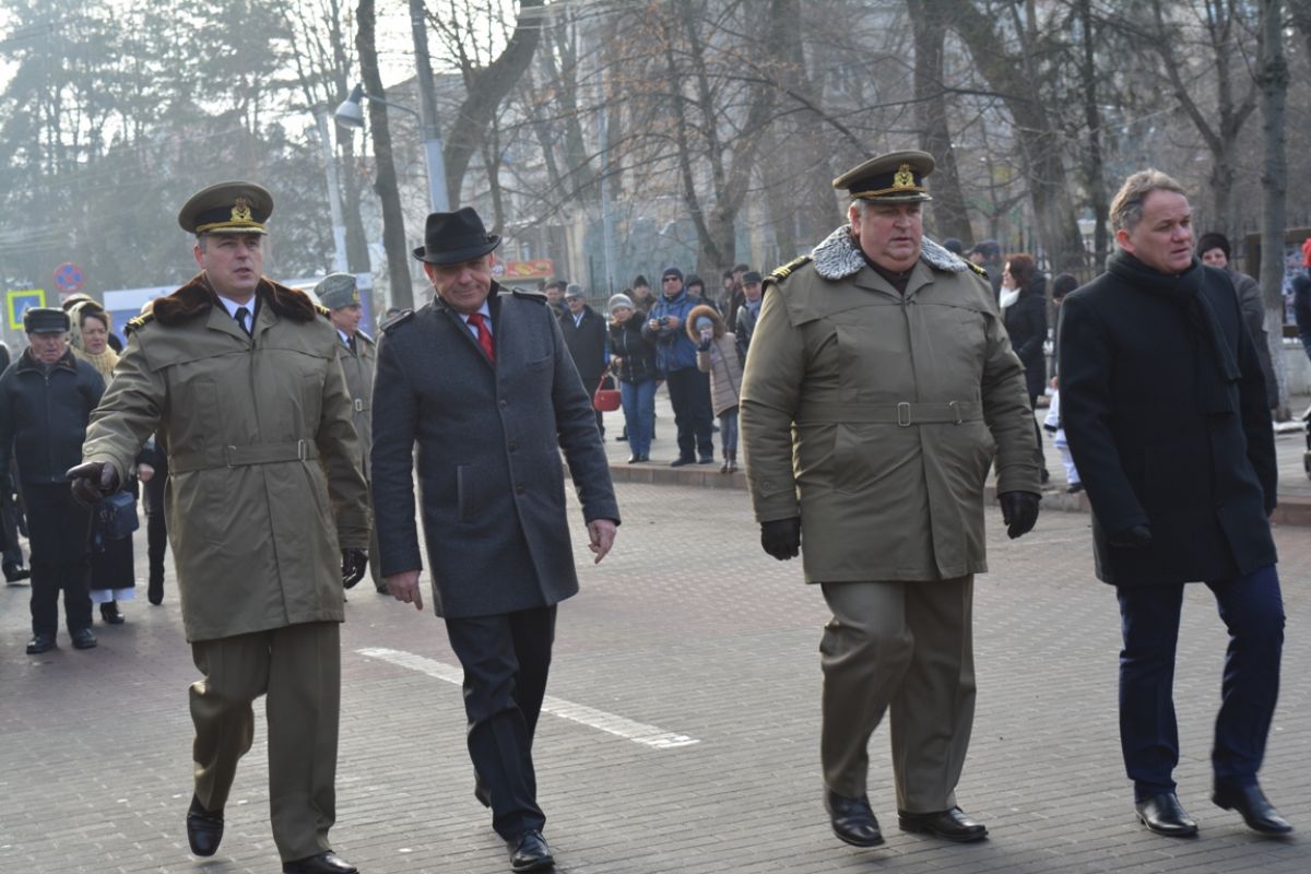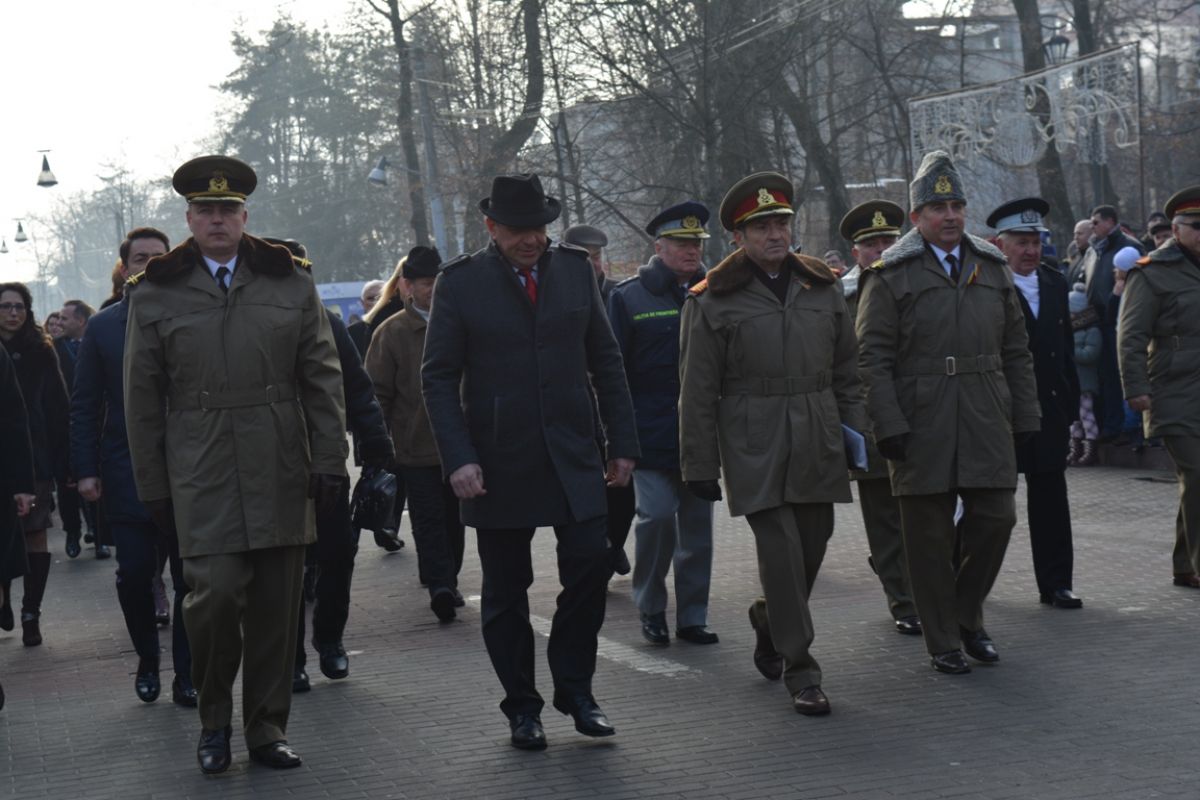 Oficialităţile s-au întâlnit în faţa Palatului Administrativ şi s-au deplasat în grup spre statuia domnitorului Alexandru Ioan Cuza din faţa Inspectoratului de Poliţie Judeţean. În primul rând s-au aflat prefectul Dan Nechifor şi preşedintele CJ Botoşani, Costică Macaleţi. Acesta din urmă s-a oprit înainte de a ajunge la plutoanele militare, acolo unde primul reprezentant al Guvernului în judeţ a primit onorul.