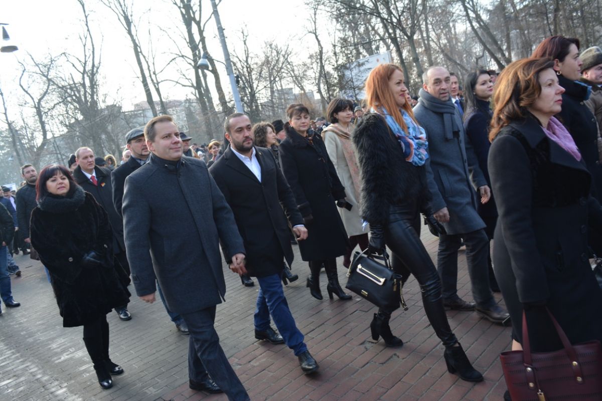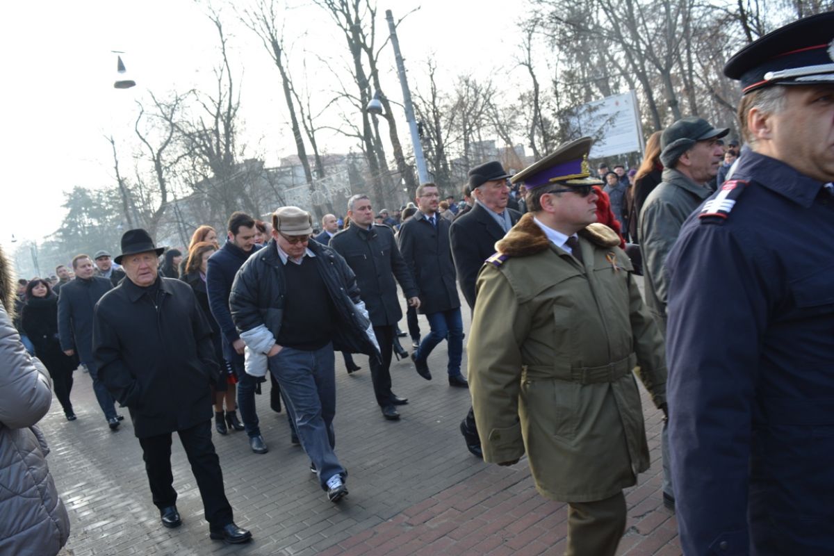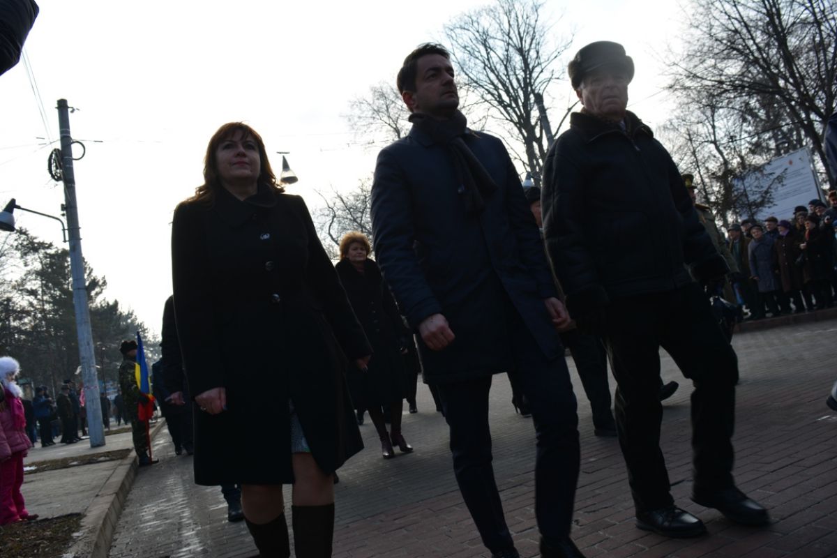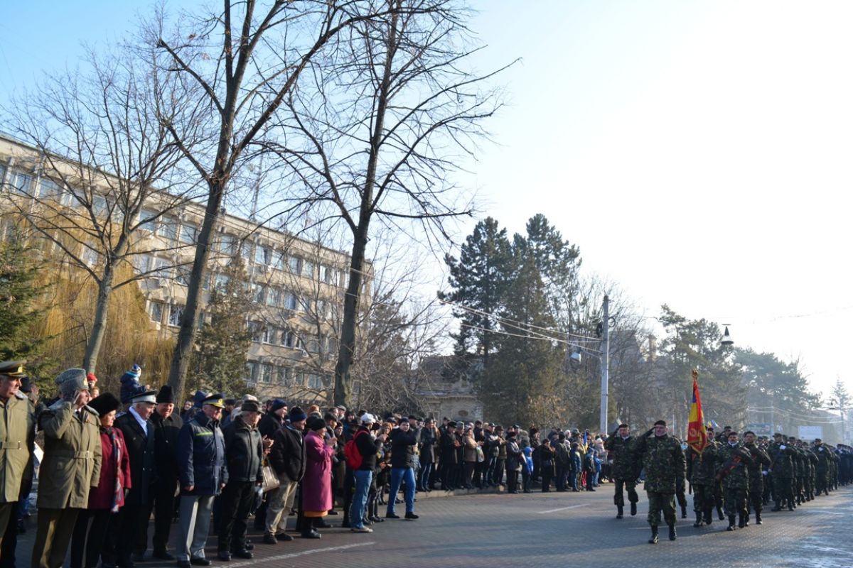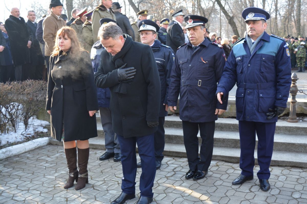Oficialităţile s-au întâlnit în faţa Palatului Administrativ şi s-au deplasat în grup spre statuia domnitorului Alexandru Ioan Cuza din faţa Inspectoratului de Poliţie Judeţean. În primul rând s-au aflat prefectul Dan Nechifor şi preşedintele CJ Botoşani, Costică Macaleţi. Acesta din urmă s-a oprit înainte de a ajunge la plutoanele militare, acolo unde primul reprezentant al Guvernului în judeţ a primit onorul.