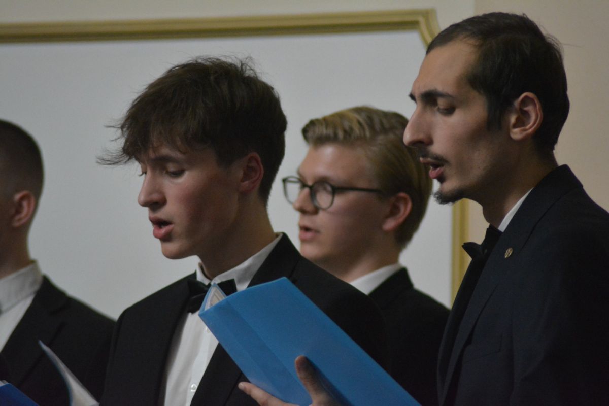 Concertul a fost deschis de Corala ”Biruitorii” (dirijor prof. Cezar Grădinaru), formată din elevi și foști elevi ai Seminarului Teologic din Botoșani, dar și preoți și profesori. În prima parte au adus în fața publicului colinde cunoscute, de la ”Moș Crăciun” (de Gh. Danga), Triptic de colinde de Tiberiu Brădiceanu (”Iată vin colindători”, ”Sus în vârful muntelui” și ”Gazde mari nu mai dormiți”), la ”Domnuleț și Domn din Cer” (de Gh. Cucu). Pentru ca partea a doua să fie dedicată colindelor ”Linu-i lin” (de Tiberiu Bredinceanu), solist Andrei Todireanu, ”În seara de Moș Ajun” (de Marin Tache), ”Leru-i Ler (de Gabriel Popescu), solist pr. Sebastian Grădinaru, dar și ”Trei crai de la răsărit” (de Anton Pann), soliști Robert Gheorghiță și Teofan Dascălu sau ”La Vitleem colo-n jos” și ”Colindița” (Emil Montia).