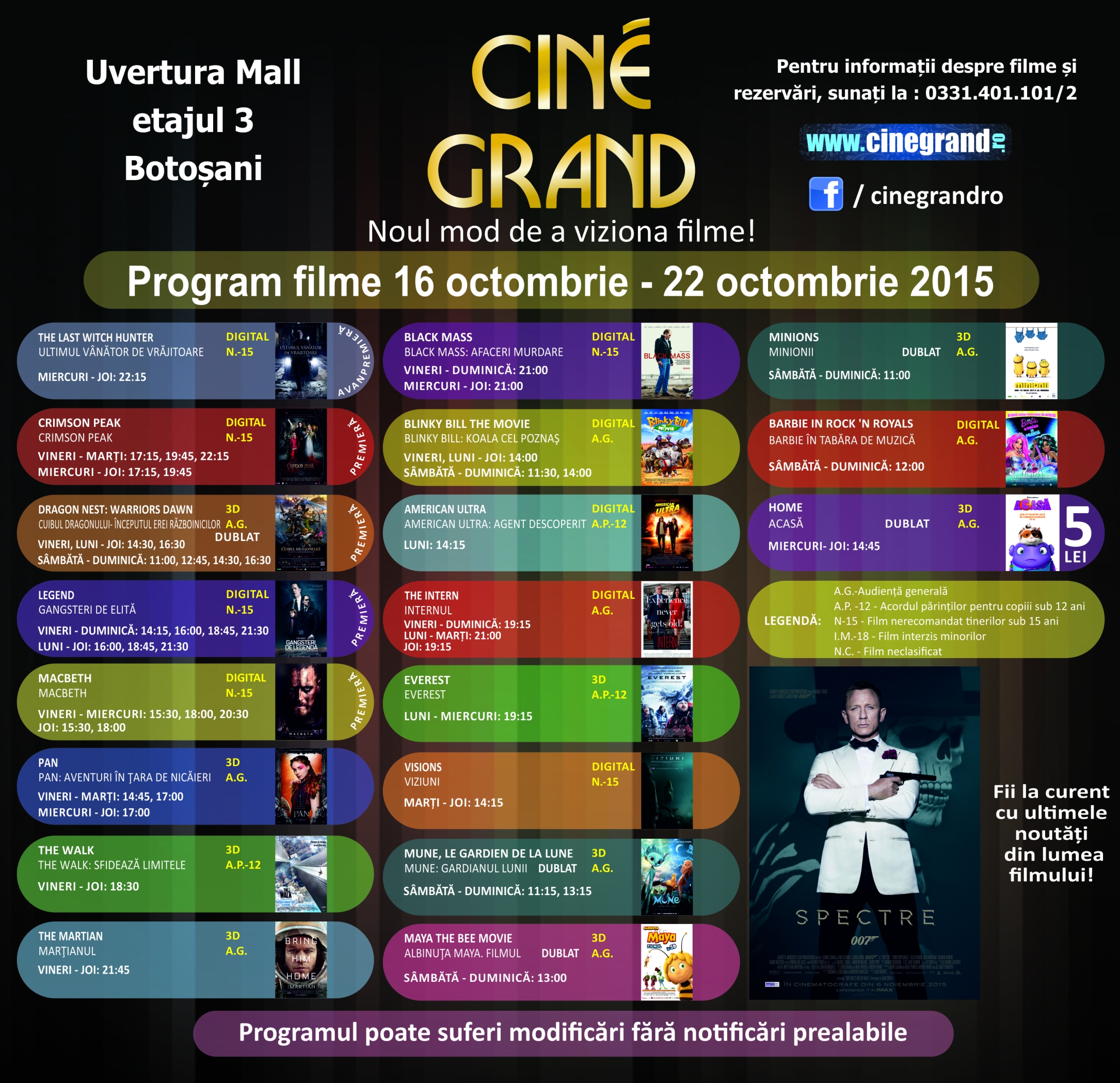 Atasat gasiti intregul program al filmelor pentru Cine Grand Botosani.