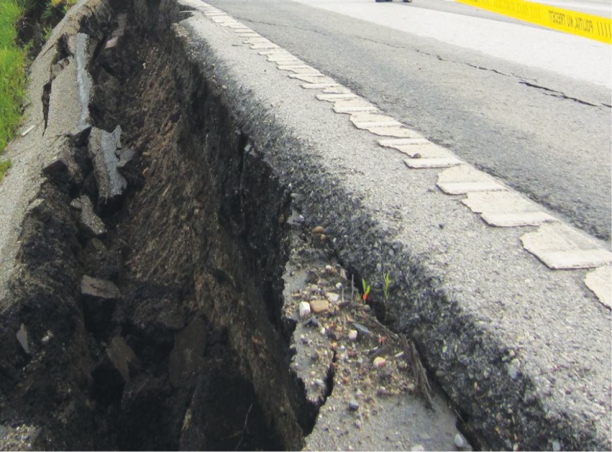 Potrivit autorităţilor locale, din cauza alunecărilor de teren, şoseaua o ia la vale cu tot cu parapeţi şi semne de circulaţie, iar responsabilii cu drumurile naţionale încearcă de două decenii să o repare fără succes.