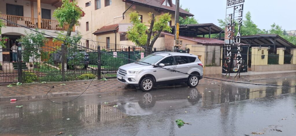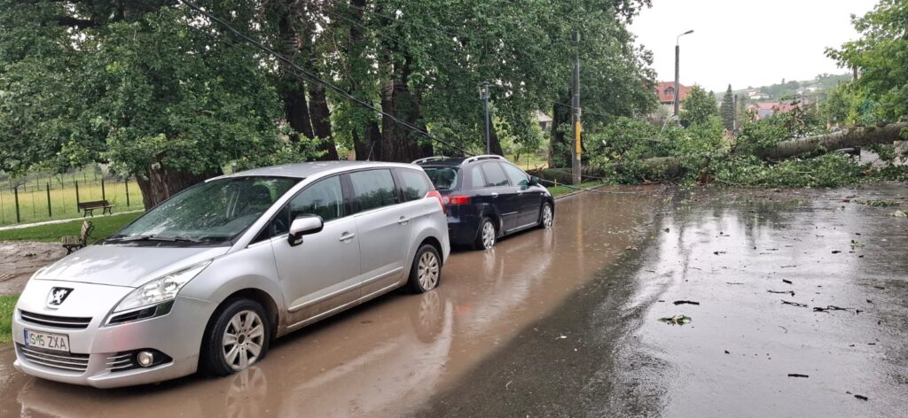 În cădere, arborele a rupt un gard perimetral şi a afectat reţeaua de electricitate.