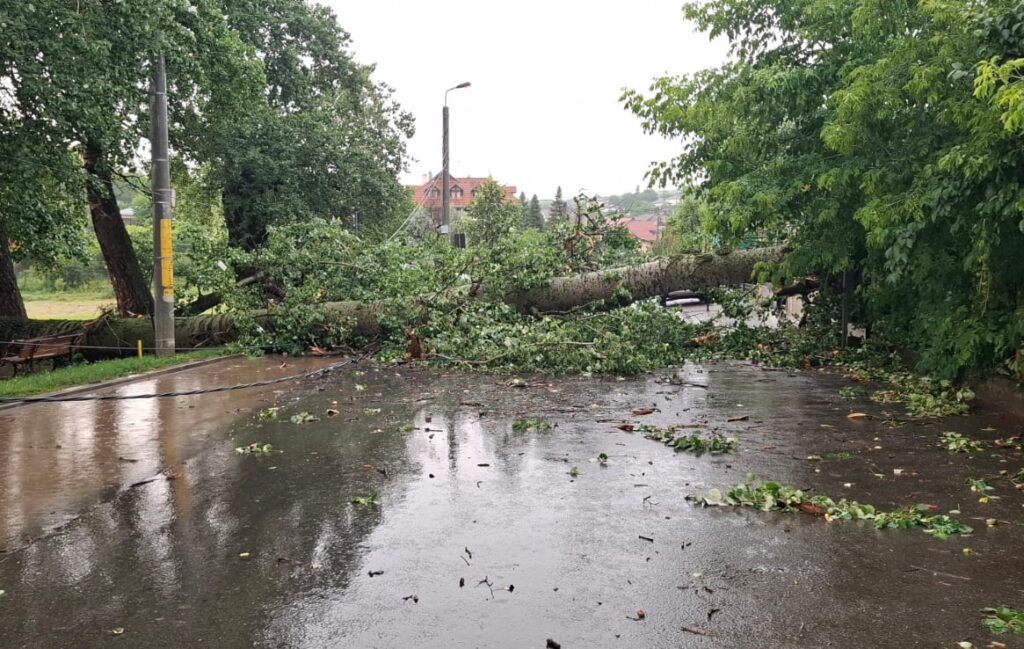 Pompierii militari au fost solicitați să intervină miercuri în municipiul Iași, pe strada Plopii fără Soț, unde un plop de mari dimensiuni, declarat monument al naturii, s-a prăbușit pe spațiul public, în urma unei furtuni.