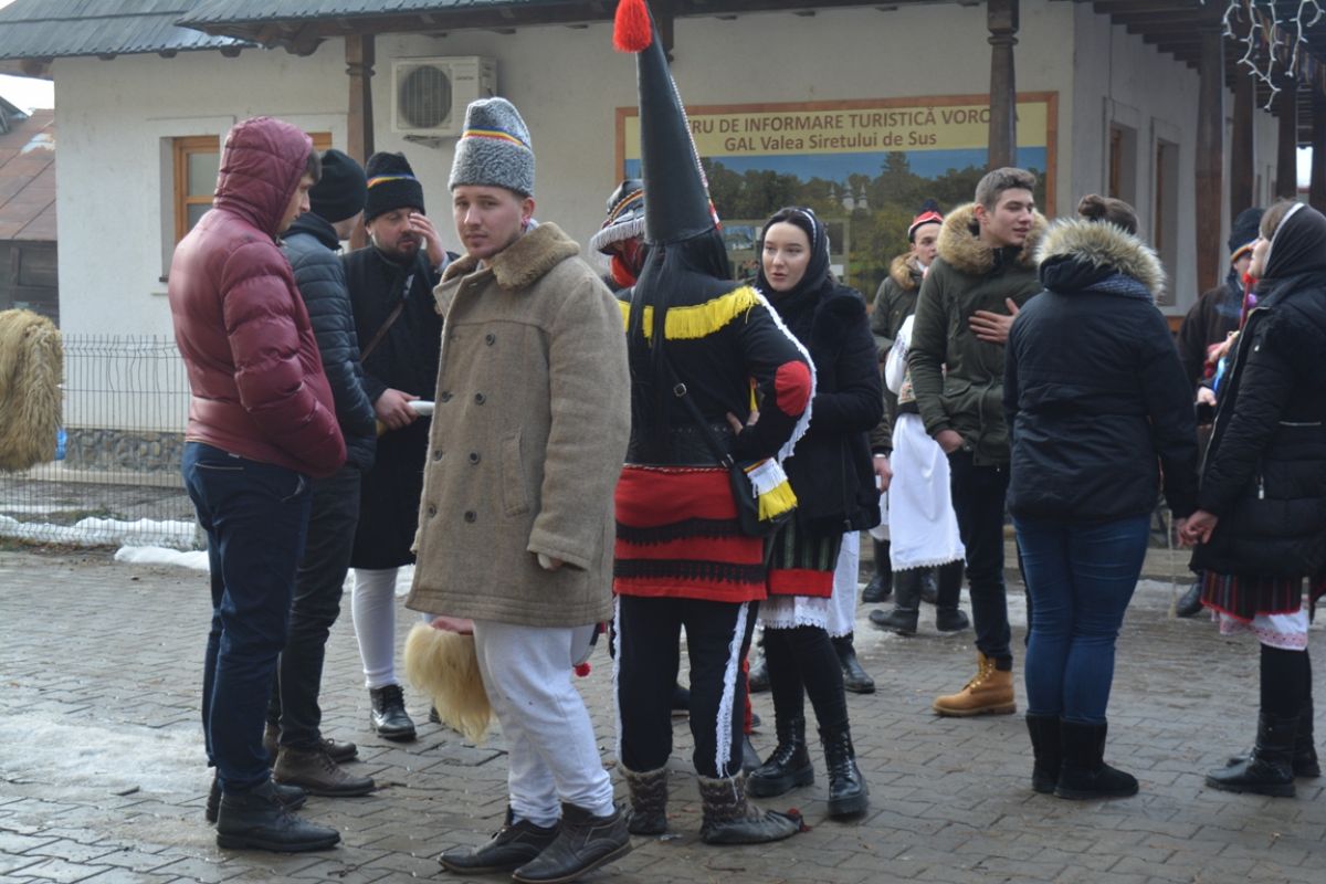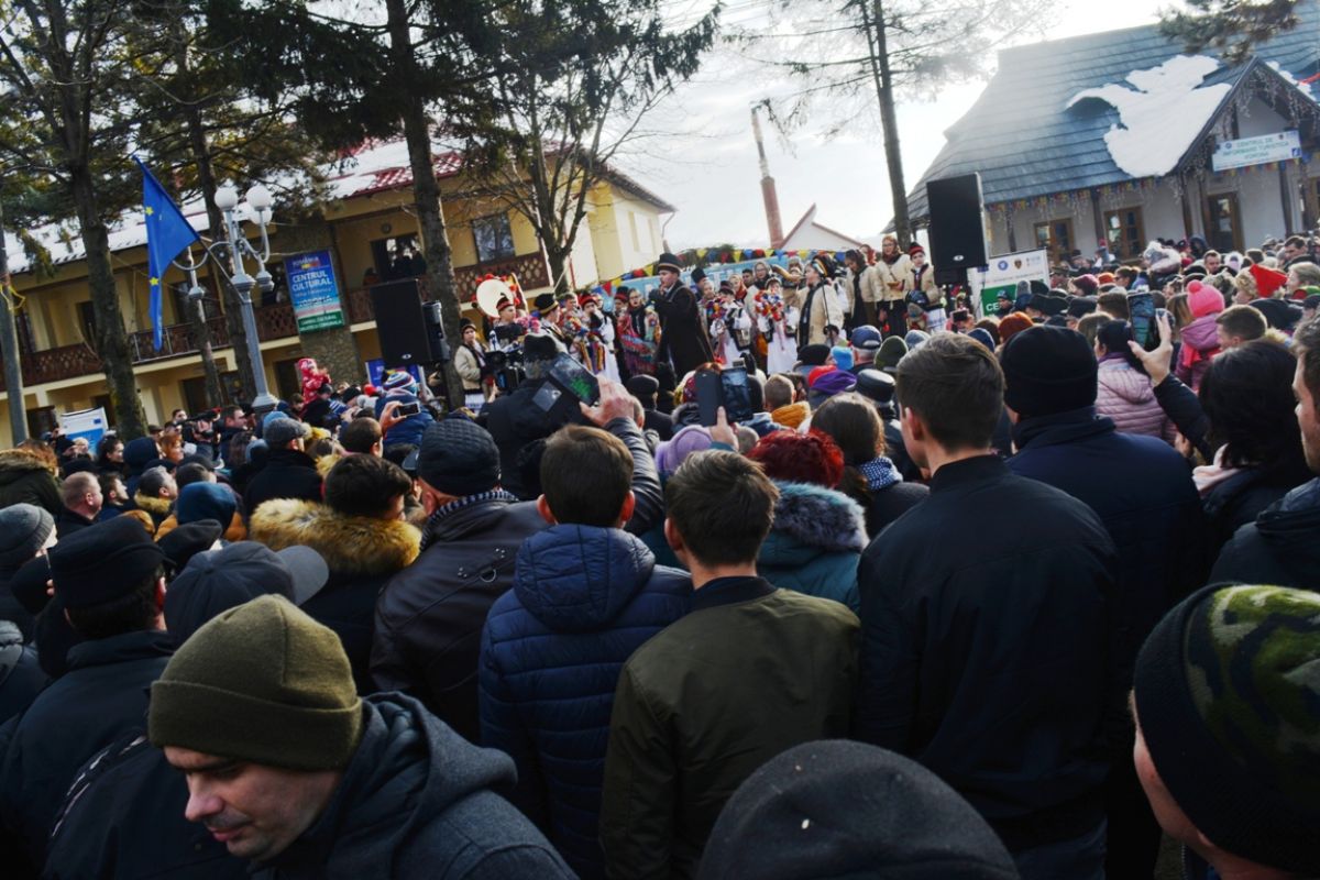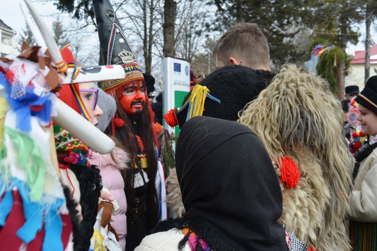 Care pe jos, care prin mașini, care prin căruțe, cu tot felul de măști și mesaje amuzante s-au strâns mai întâi la casa omului de afaceri Cornel Șfaițer, după care au oferit un spectacol de sunet și culoare prin fața Primăriei și a Liceului Tehnologic ”Ștefan cel Mare și Sfânt”.