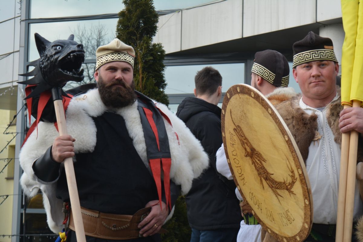 Printre ei inclusiv și câțiva... daci, veniți cu steagul de pe vremea lui Decebal, celebrul cap de lup.