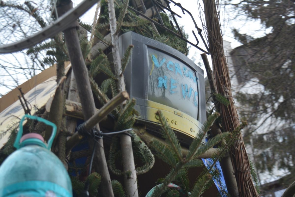 Ba mai mult, una dintre căruțe avea și un televizor comutat pe postul TV ”Vorona News”, la care prezentatoare era Andreea Esca și care tocmai anunța că, ”un mare interlop a fost capturat aseară”. Iar ”interlopul” era fotografiat în fața Centrului de Informare Turistică Vorona.