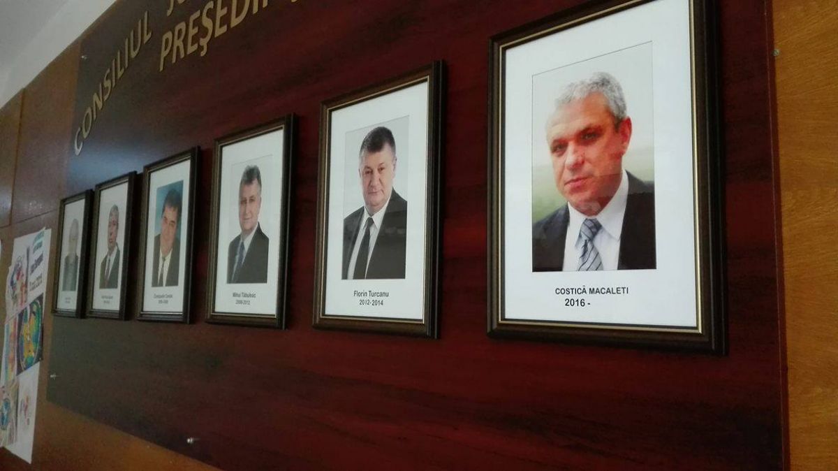 De asemenea a dispărut și una dintre plăcuțele cu numele celor cinci președinți ai Consiliului Județean Botoșani, din perioada anterioară lui Costică Macaleți. Actualul președinte al CJ Botoșani are un tablou și în galeria prefecților. El nu îl ”întrece” însă pe Gheorghe Sorescu care are fotografii la galeriile prefecților și a președinților și vicepreședinților de la CJ. (G.E.)