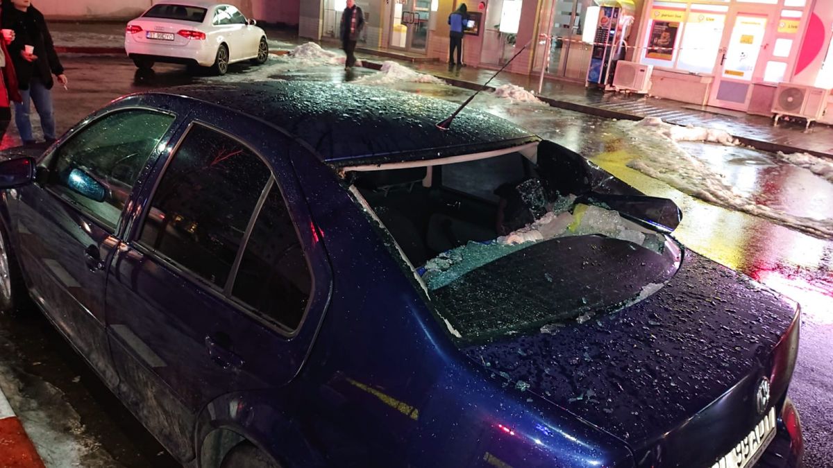 Incidentul s-a petrecut în dupa amiaza zilei de duminică, 9 decembrie 2018. Un botoșănean și-a găsit mașina cu luneta spartă, după ce un sloi de gheață a plonjat chiar în partea din spate a mașinii. Acesta s-a crăpat pe loc, provocând o pagubă de sute de lei.