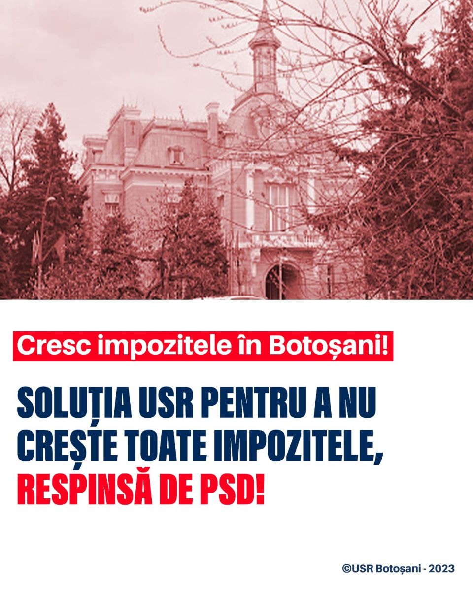Mai exact, din impozitul plătit de botoșăneni pentru că au mașină, un procent de 15% a fost adăugat de autoritatea locală, iar USR a cerut renunțarea la acest procent pentru anul 2024, astfel încât botoșănenii să rămână, după indexare, cu nivelul impozitului pe mașini din acest an. Totodată, USR a cerut scoaterea cotei suplimentare de 5% pe care primăria o are inclusă în impozitul pe clădirile nerezidențiale ale persoanelor juridice. Consilierii PSD au respins ambele amendamente ale USR, astfel încât botoșănenii vor plăti aceleași majorări ale dărilor locale ca în marile orașe ale țării, fără a se ține cont că, în acest colț de Românie, salariul mediu, sau pensia medie, sunt cu mult mai mici decât media pe țară.