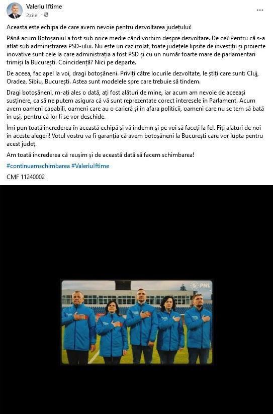 Aceasta nu reprezintă proprietatea lui Valeriu Iftime, nici a Partidului Național Liberal și nici măcar a FC Botoșani.