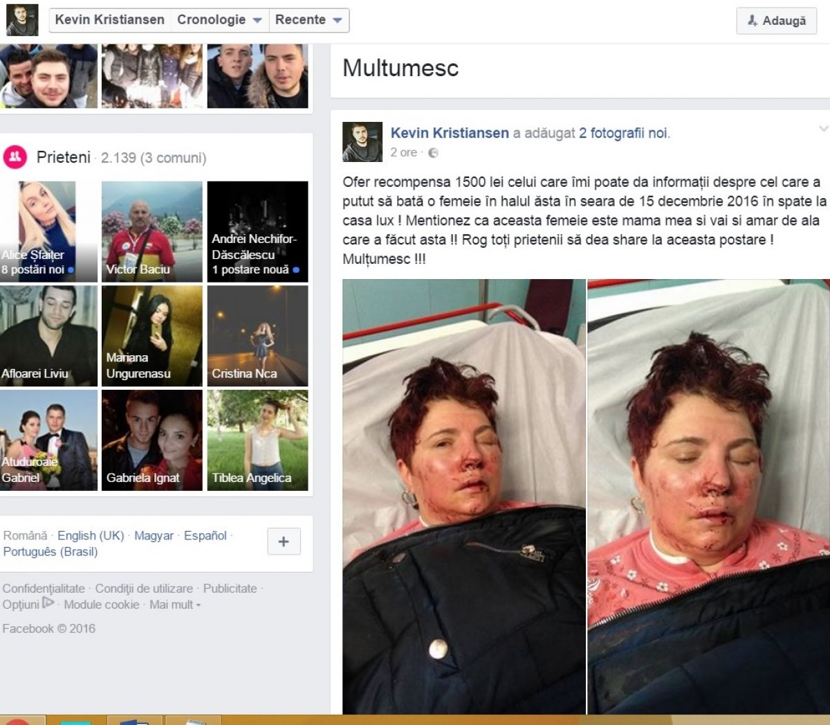 ”Vă rog din toată inima celor care stiu ceva despre acest caz să îmi dea un mesaj! Precizez ca pe mama au transferat-o acum la Iași în stare foarte foarte gravă !!! ( Mulțumesc tuturor care îmi scrieți dar din pacate nu va pot răspunde la toți ! )”