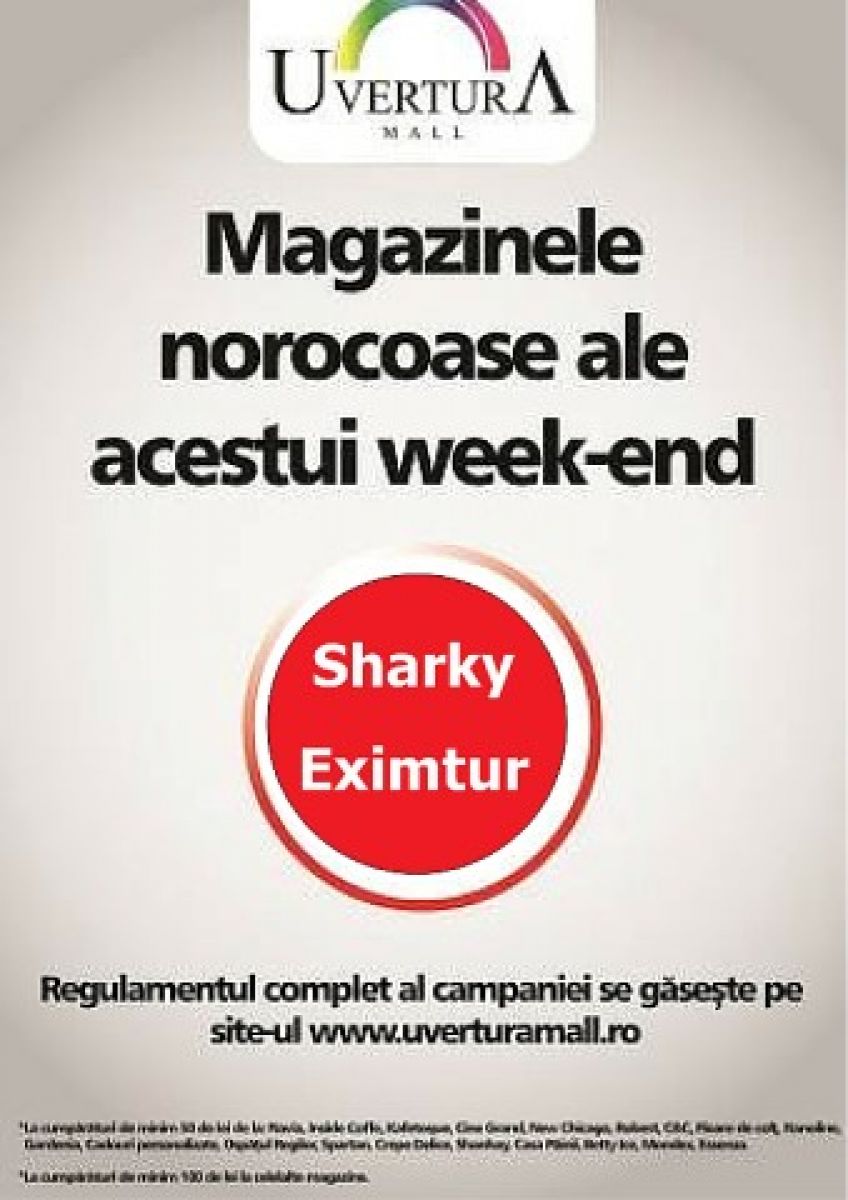 Iubirea poate aduce noroc la Tombola Magazinele Norocoase. Toți clienții magazinelor Eximtur și Sharky vor avea oportunitatea să câștige premiul pus în joc. Fiecare magazin va desemna un câștigător al unui voucher de 250 de lei. Copiii vor avea motive de distracție în acest week-end pentru că Uvertura Mall pregătește câteva ateliere interactive. Ne pregătim să confecționăm mărțișoare pentru cei dragi, căci cel mai frumos cadou este cel oferit din inimă, sâmbătă, ora 14:00, etajul 3. Seria atelierelor de dans continuă cu dansuri specifice din ardeal, sâmbătă, ora 16:00, etajul 3, iar duminică are loc super Concursul de cultură generală între școli, de la ora 16:00, la etajul 4. Luni, 15 februarie 2016, toți cei care sunt obosiți după o zi a îndrăgostiților plină de evenimente sunt invitați la un Concurs de darts și o cafea bună la Navia Cafe. Aici, cu siguranță vă veți descreți frunțile.