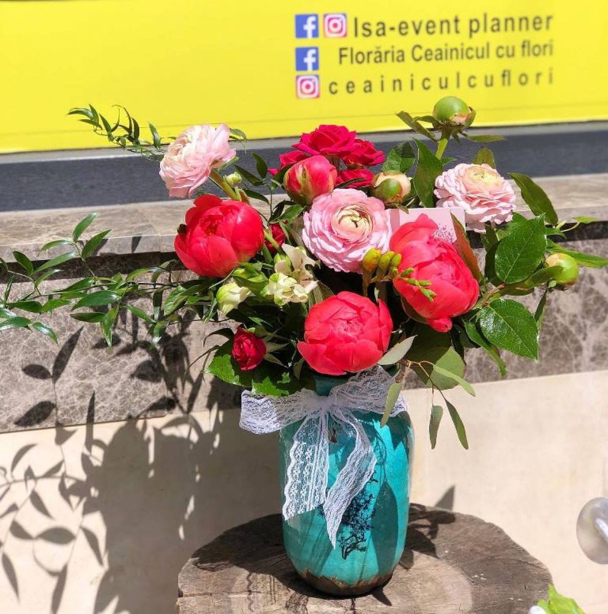 De exemplu, poți comanda la florăria Ceainicul cu flori un buchet de flori în valoare de 100 de lei cu livrare la domiciliu, completezi două taloane cu numele tău, iar unul dintre ele s-ar putea să fie câștigător. Practic, dacă vei cumpăra mai multe aranjamente florale, vei avea mai multe șanse de câștig.