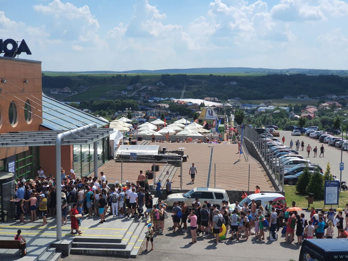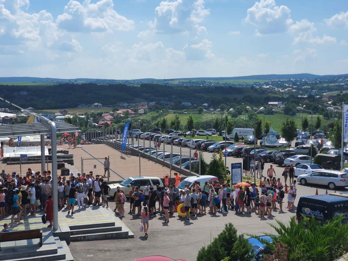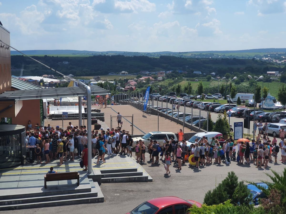 Și la intrarea în complex pentru piscina exterioară, aceeași imagine a oamenilor care așteaptă (ne)răbdători să cumpere bilete pentru a se bucura de apă și soare. Au fost zile în care numărul celor care au cumpărat bilete a trecut pragul de 1.000 de oameni.